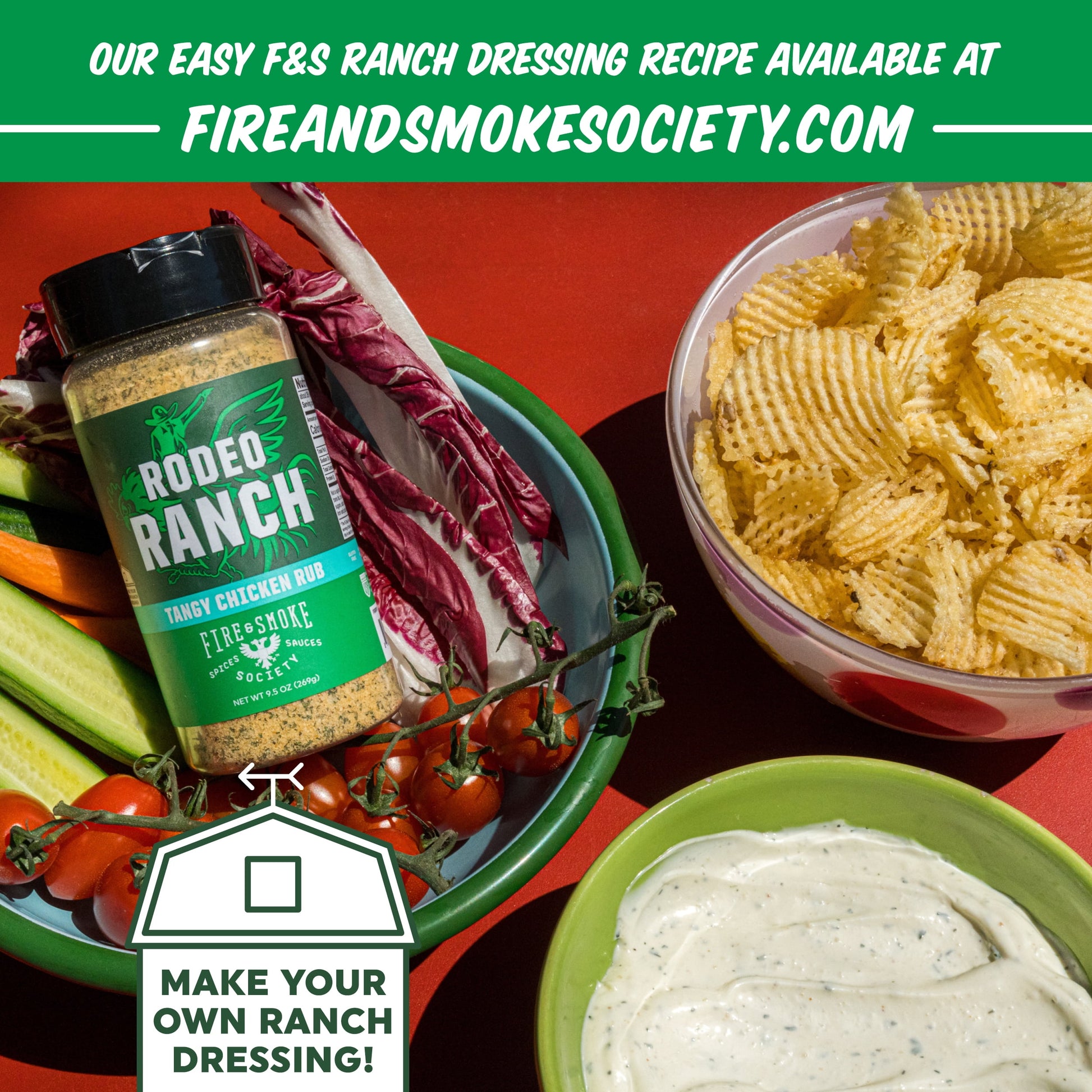 Rodeo Ranch tangy herb seasoning is also a delicious pork seasoning, fish seasoning, and vegetable seasoning. Transform ordinary dressings into a tangy sensation with Fire Smoke Society's Rodeo Ranch seasoning blend – an exquisite blend of herbs and spices that brings the authentic ranch flavor to your homemade dressings.