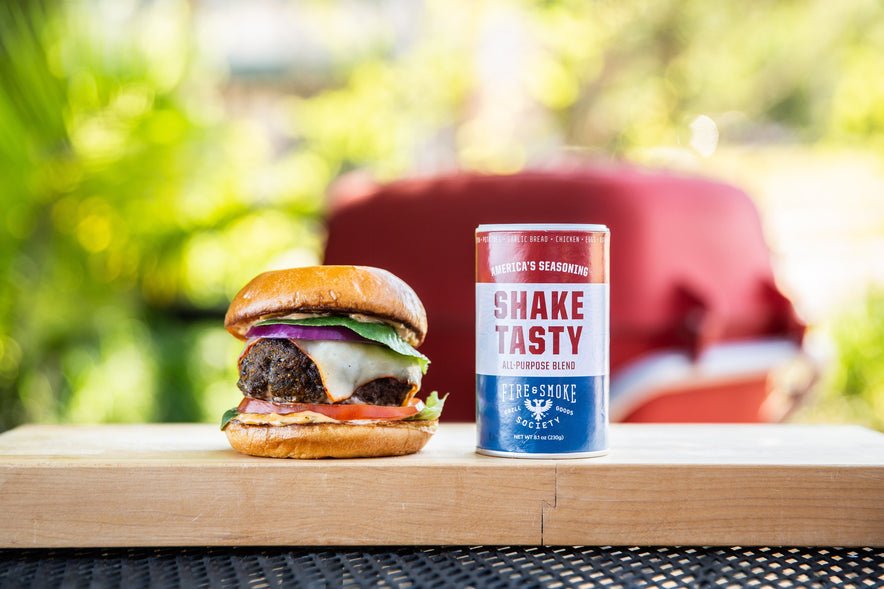 The Fire & Smoke Society presents the Shake tasty meat seasoning and veggie seasoning. America’s new go-to savory seasoning perks up all your favorite foods. Whether you're grilling up a feast with our BBQ rubs and spices for smoking or preparing roasted chicken burgers, turkey burgers, or pork burgers; this is the ideal seasoning blend for you. Our grill seasoning set has all the essential seasoning flavors, making it the perfect dry rub for smoking and grilling, beef, chicken, turkey and even vegetable seasoning. Our carefully selected ingredients and unique flavor combinations take the guesswork out of meal planning and they make feasting fun. So, fire up your grill and experience the mouthwatering flavor of our spices and seasonings, perfect for any meat lover looking to take their grilling game to the next level.