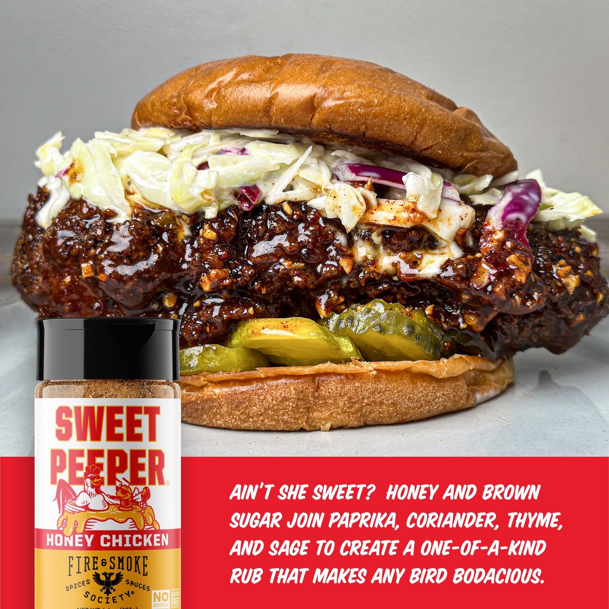 Sweet Peeper also works on turkey burgers, fried chicken, rotisserie chicken, chicken burgers, and whole turkey. The perfect barbecue seasoning for smoking and grilling meats.