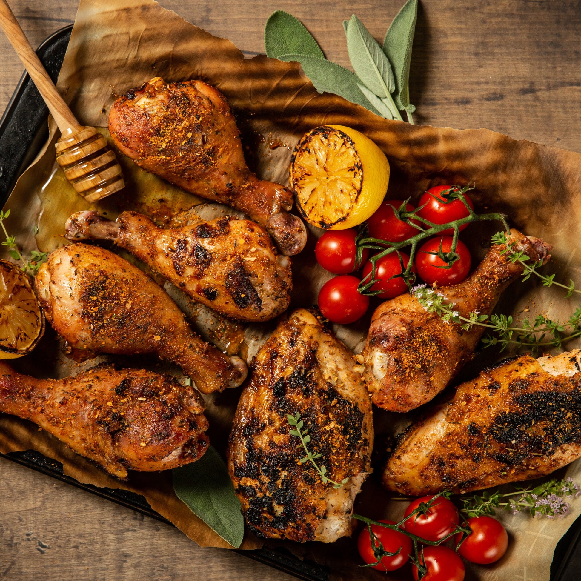 Sweet Peeper chicken rub is the perfect blend of honey and brown sugar join paprika, coriander, thyme, and sage to create a one-of-a-kind rub that makes any bird bodacious. Use it on chicken thighs, turkey wings, rotisserie chicken, chicken wings, chicken burgers or anything else you can think to do with yard bird. Hoo wee! BBQ rubs and spices for smoking with No Artificial Ingredients, Gluten Free, MSG Free, Fat Free, Plant-Based