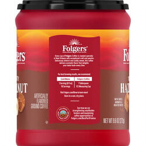 Contains one (1) 9.6 oz. canister of Folgers Toasty Hazelnut artificially flavored coffee