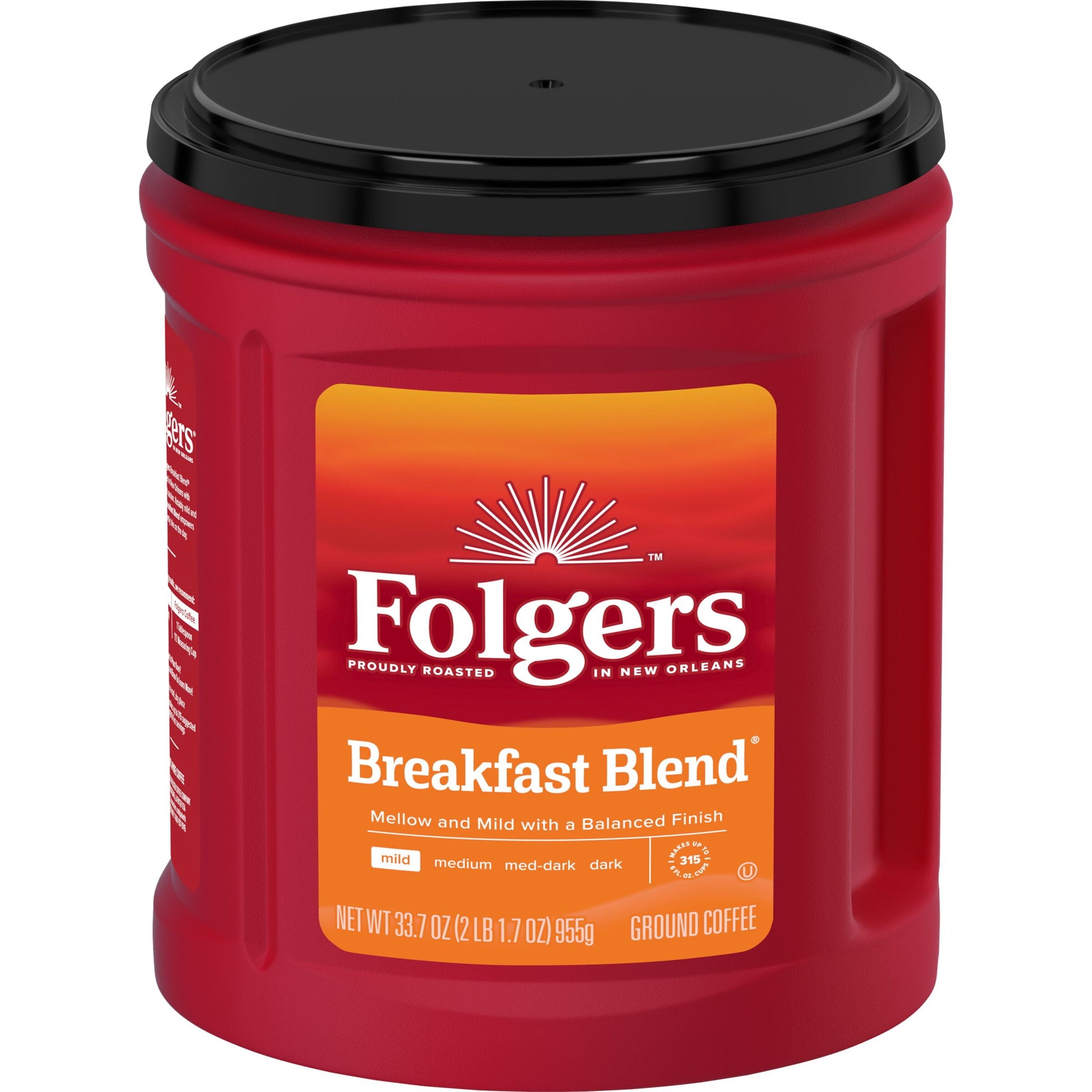Contains one (1) 33.7 ounce AromaSeal canister of Folgers Breakfast Blend Ground Coffee