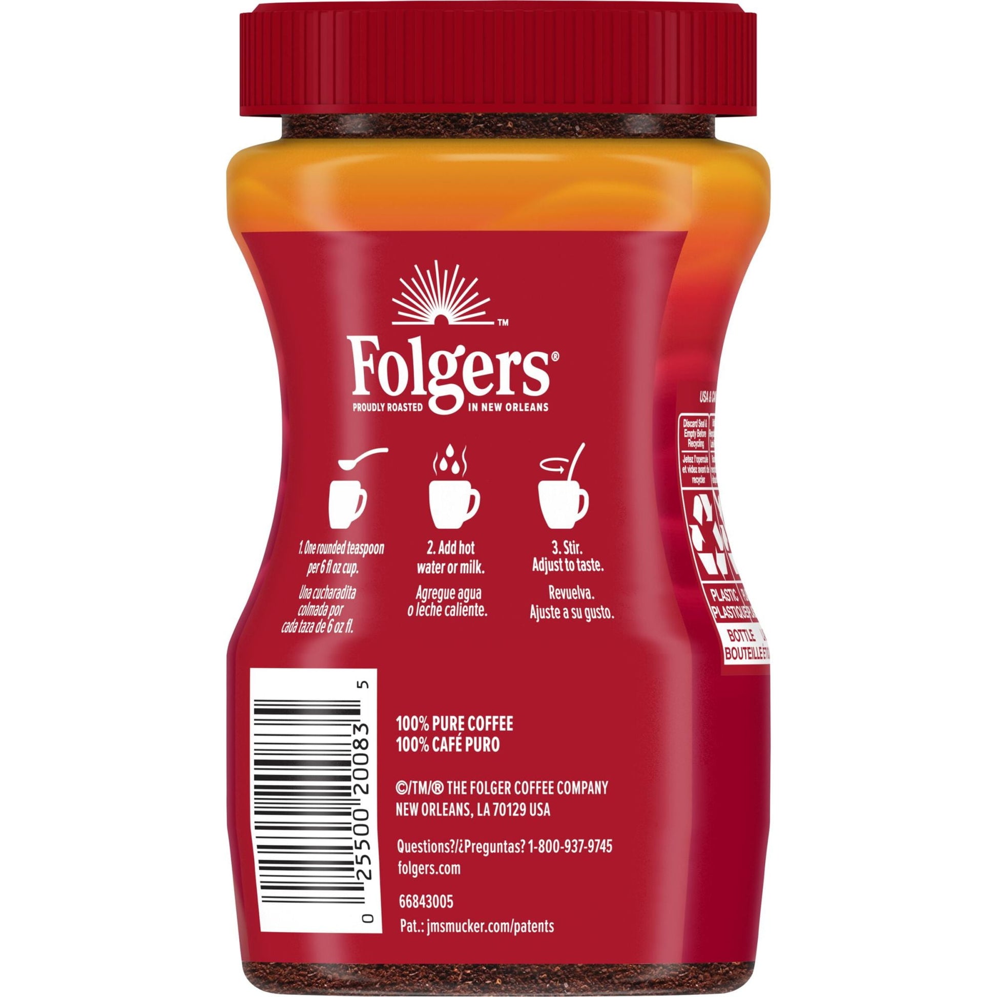 Contains one (1) 3-ounce jar of Folgers Classic Roast Instant Coffee