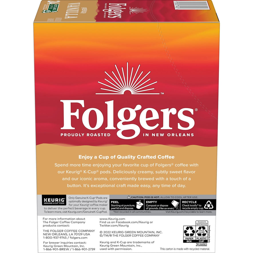Experience vanilla perfection with Folgers French Vanilla artificially flavored coffee in convenient coffee pods. Deliciously creamy and subtly sweet, this coffee delivers aromatic flavor that will delight your taste buds every time. But thats no surprise every cup of Folgers Coffee is roasted specially in New Orleans with exceptional craft and passion, ensuring that you have plenty to love in every cup. So, brew yourself a mug with the touch of a button. Then, customize it with your favorite creamer or sweetener, or drink it as is for incredible taste thats sure to elevate any part of your day. Order yours and enjoy.