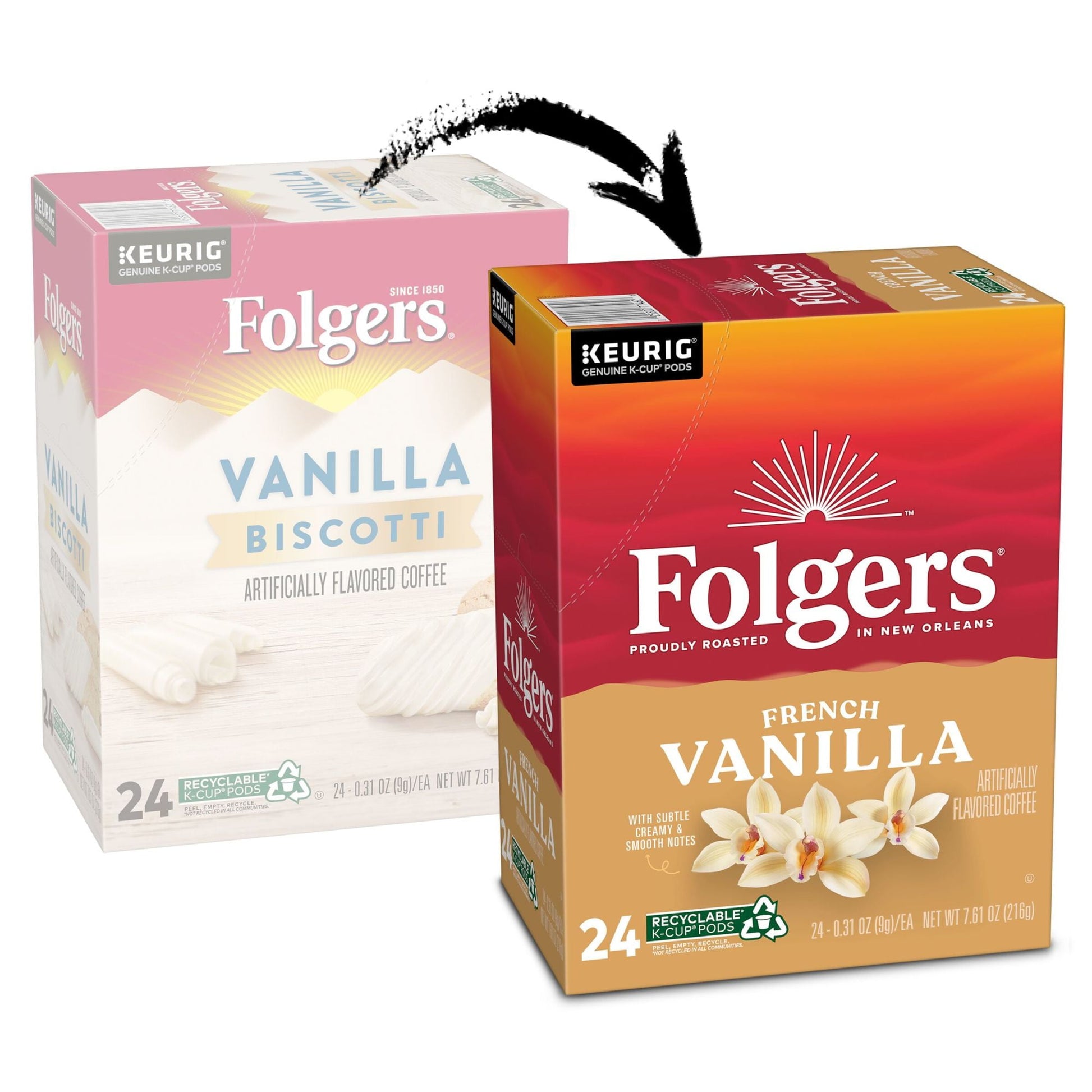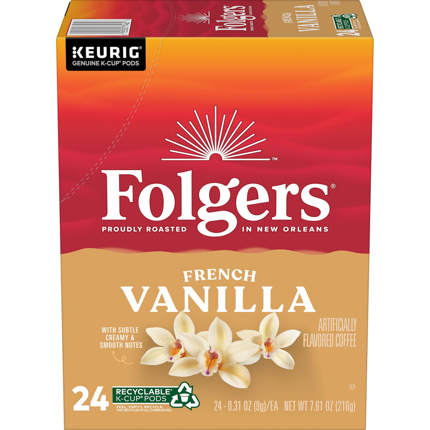 Contains one (1) twenty-four (24) count box of Folgers French Vanilla artificially flavored coffee Keurig K-Cup pods