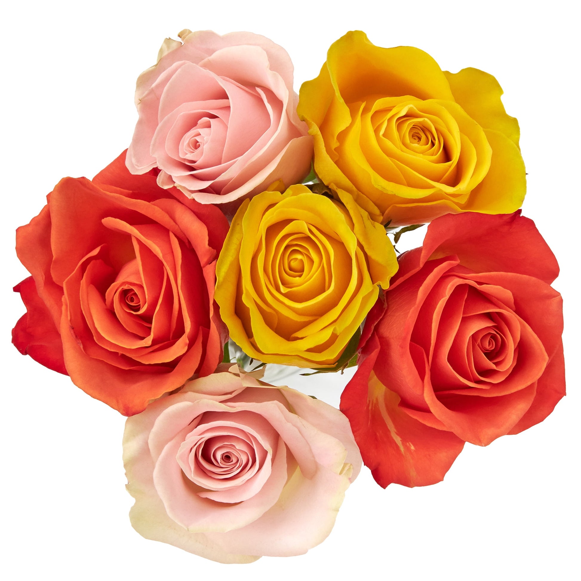 This Fresh-Cut 6 Stem Roses Flower Bunch is a classic! Roses are the flowers of love, romance, friendship, or appreciation. Roses make a timeless gift, look great anywhere and bring an elegant touch to any occasion. Keep for yourself and place in your home, office, or any space to brighten the decor. Color combination can vary from bouquet to bouquet. Choose exactly how you want to display this stunning bunch by pairing it with your favorite vase to perfectly match your unique aesthetic. Mother nature produces each flower differently; variations in looks are possible. Flowers upon purchase may not appear as full as the images pictured. Please allow at least 24 hours for your fresh cut flowers to hydrate and open from bud to bloom. Let the Fresh-Cut 6 Stem Roses Flower Bunch express your feelings!