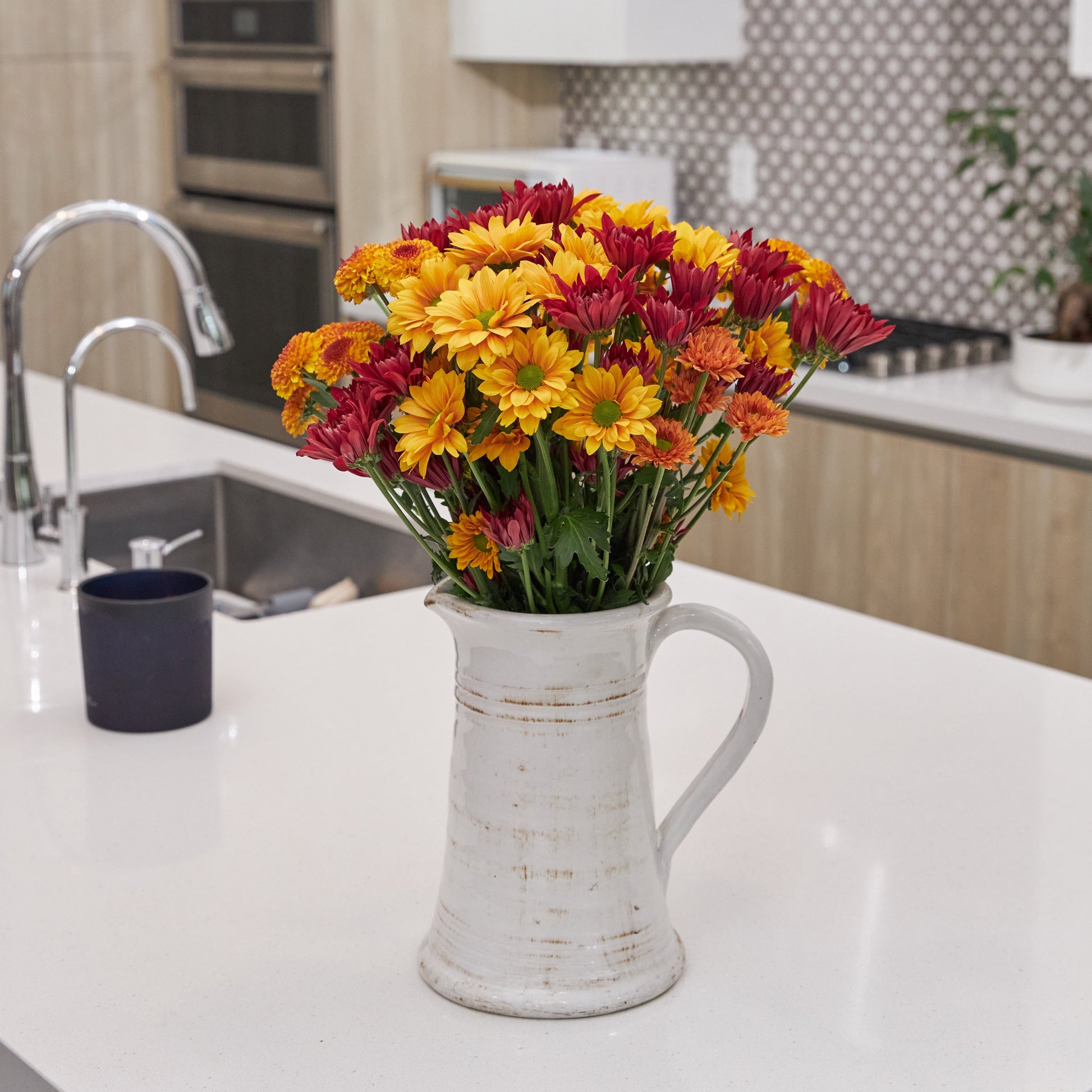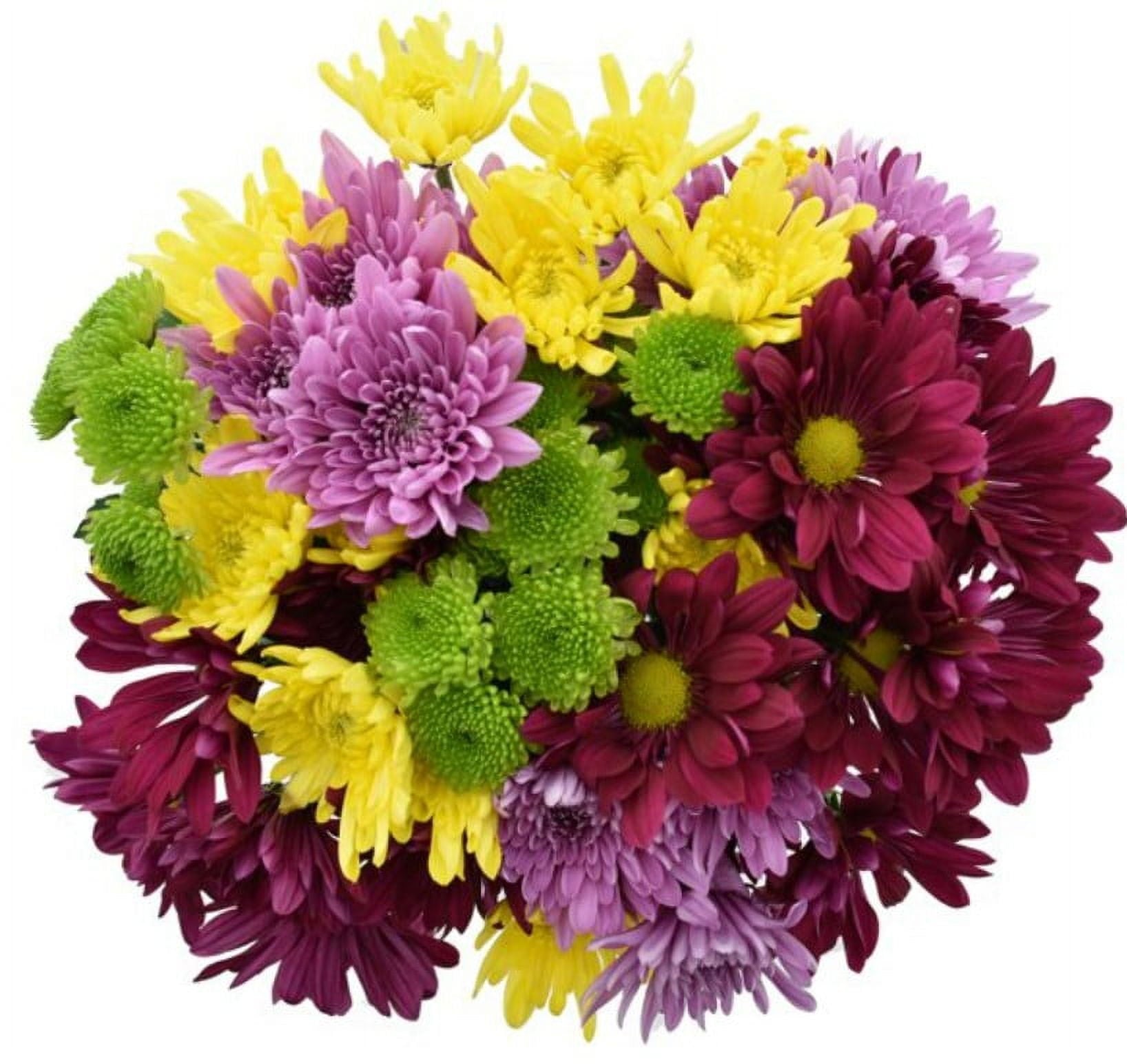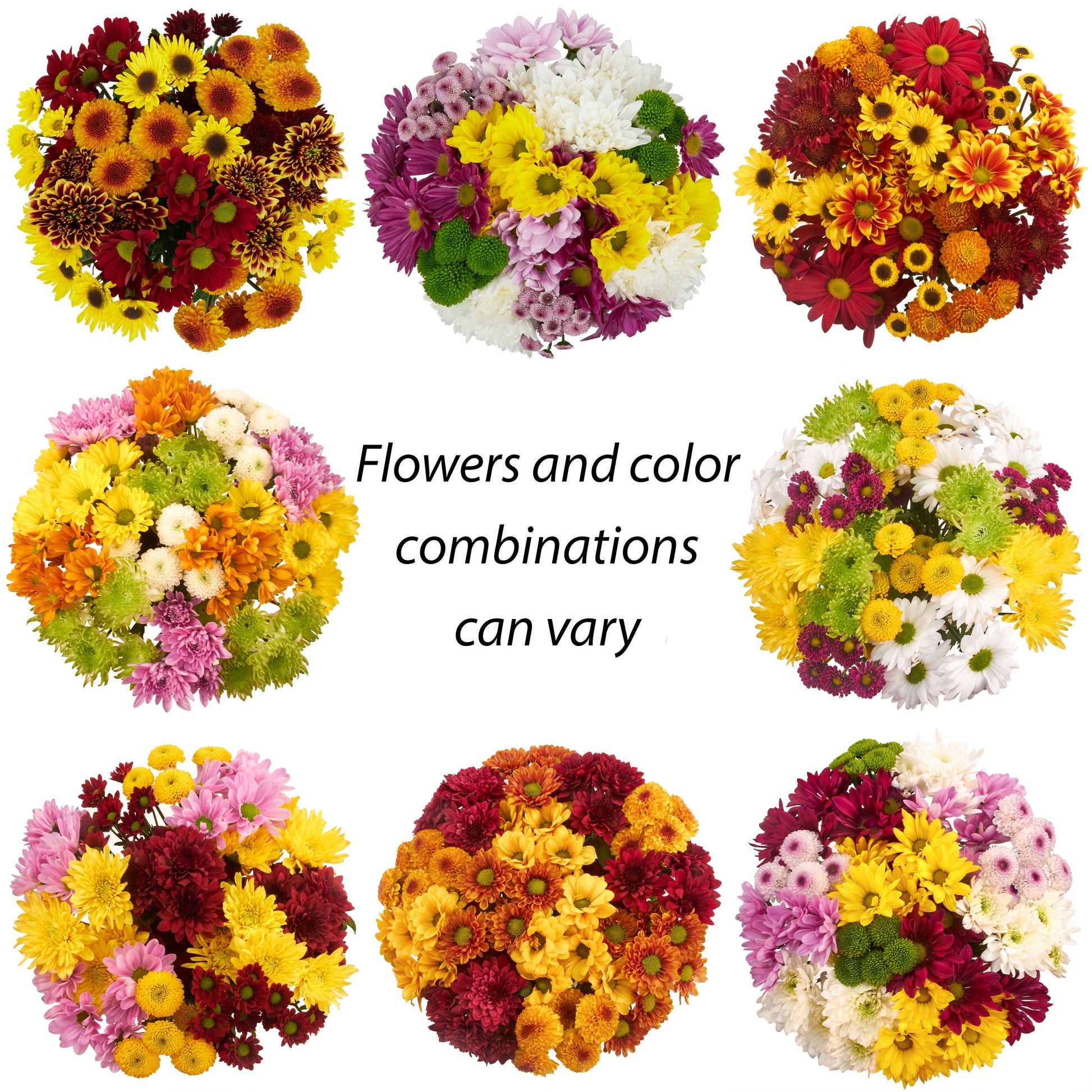 This colorful bunch of Large Rainbow Poms will refresh any space you put them in. Combined with seasonally selected colors, this bunch of fresh cut flowers is available all year round. No vase is included, so you can choose exactly how you want to display it. Gift this gorgeous little flower bunch to show affection, love, or friendship to anyone in your life. Or keep for yourself and place in your home, office, or any space to brighten the decor. Mother nature produces each flower differently; variations in looks are possible. Flowers upon purchase may not appear as full as the images pictured. Please allow at least 24 hours for your fresh-cut flowers to hydrate and open from bud to bloom. Refresh your home decor with the help of these stunning Large Rainbow Poms.