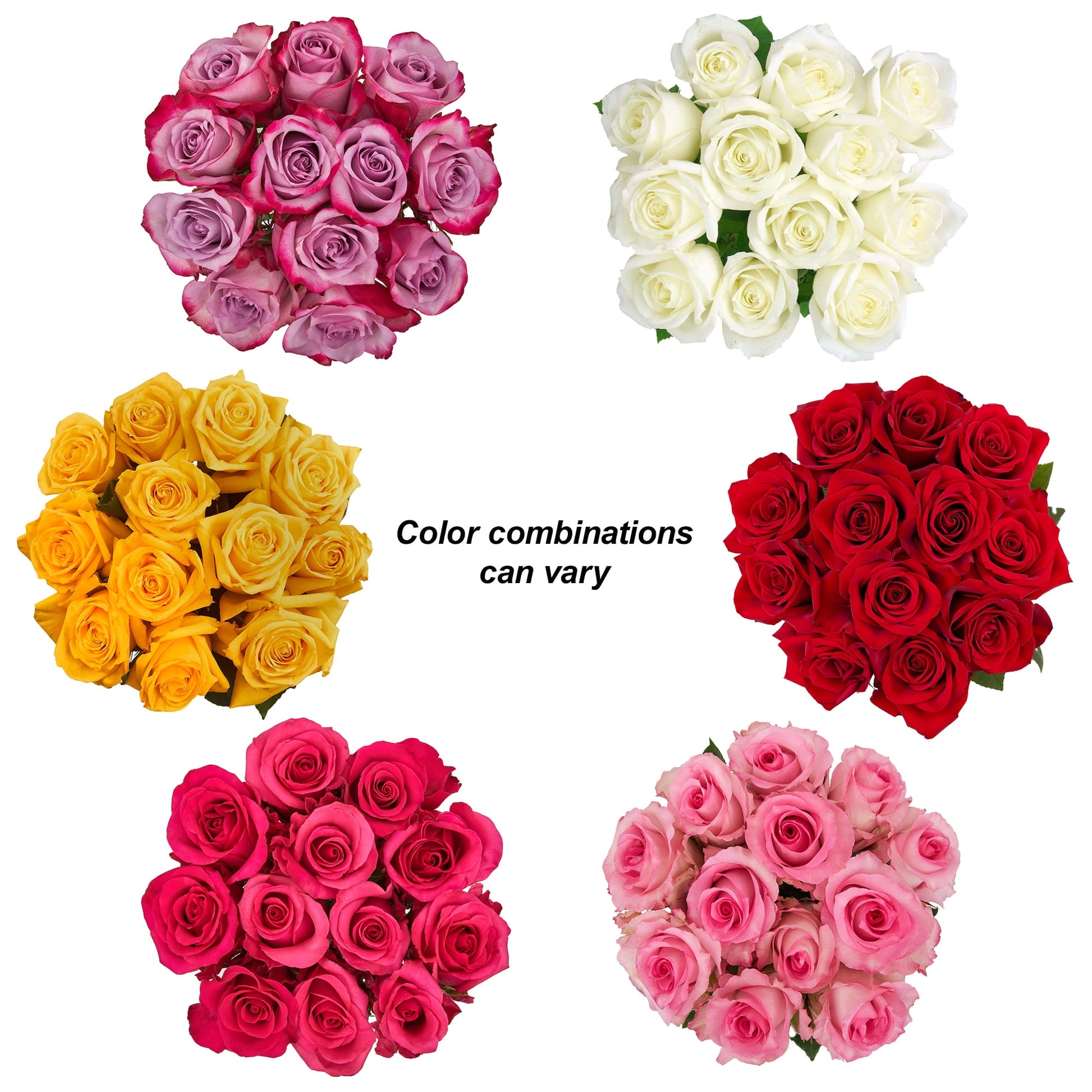 Fresh-Cut Solid Roses Flower Bunch, Minimum of 12 Stems, Colors Vary