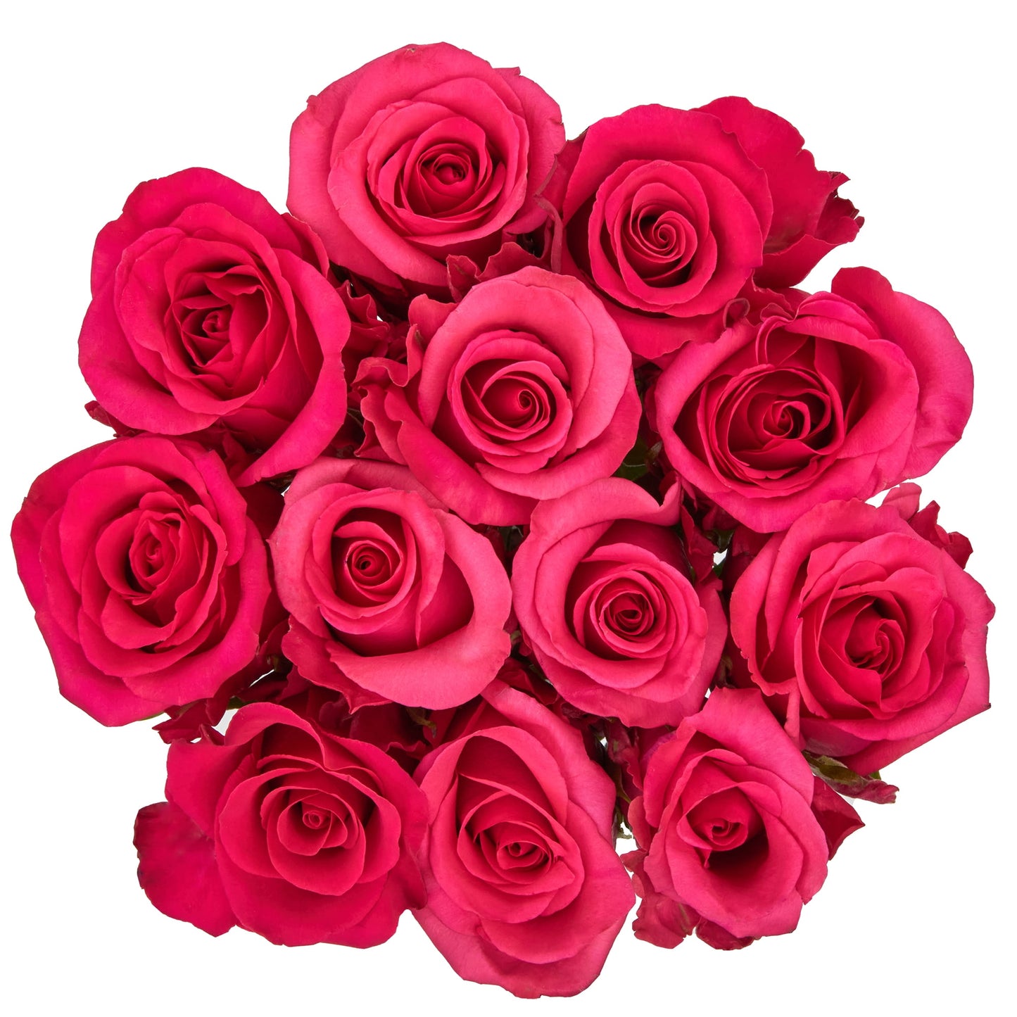 • Fresh-Cut Solid Roses Flower Bunch, Minimum of 12 Stems, Colors Vary