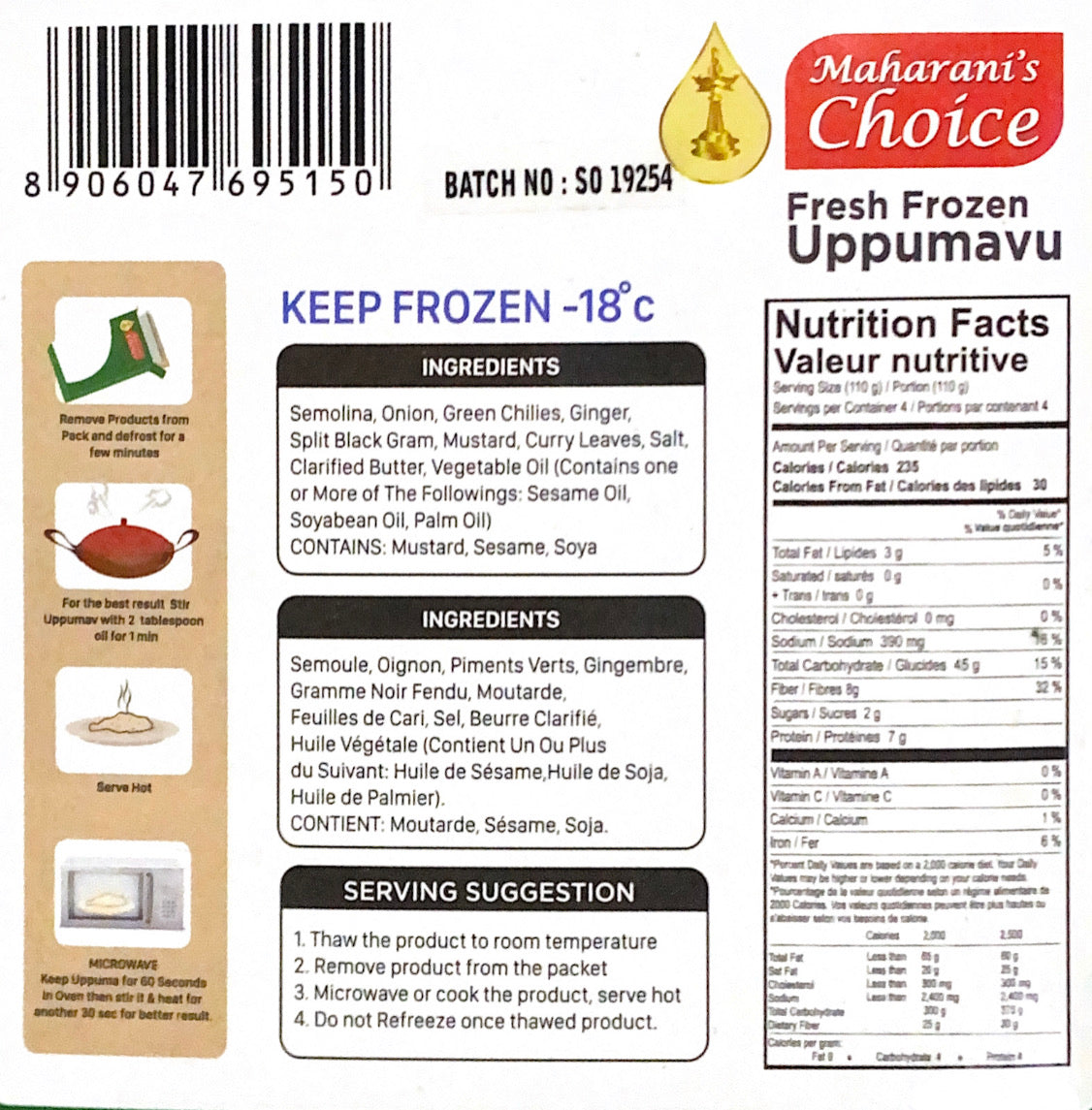 Maharani's Choice Fresh Frozen Uppumavu is one of the favorite breakfast item in south India. It is also one of the easy to prepare breakfast item. It is very tasty, very light, very healthy and very simple and easy to cook.
