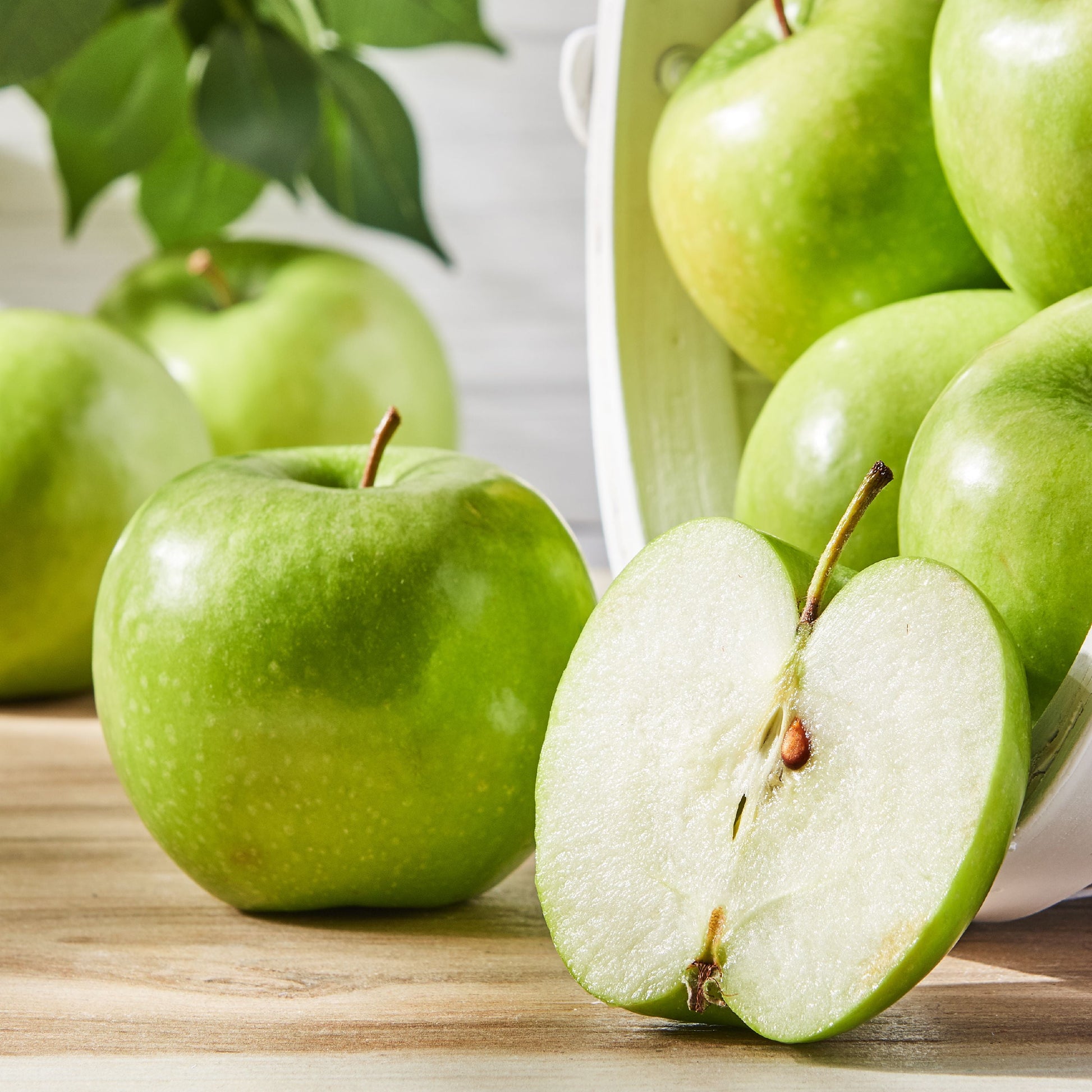 Treat yourself to the delicious, crisp taste of Granny Smith Apples. These apples are known for their bright. Enjoy one with breakfast or lunch or as a fresh snack any time of day. Best of all, these delicious apples hold up well. They are a favorite of pie bakers and can be used for snacking, salads, pairing, or made into a delicious sauce that pairs perfectly with pork. Try incorporating them into soups and compotes or using to make yummy jam or juice. Use them to create apple crisp, pie and strudel for a sweet treat. You can even pair them with sharp cheeses and crackers to create a stunning appetizer cheese board to share with guests. The possibilities are endless with Granny Smith Apples.