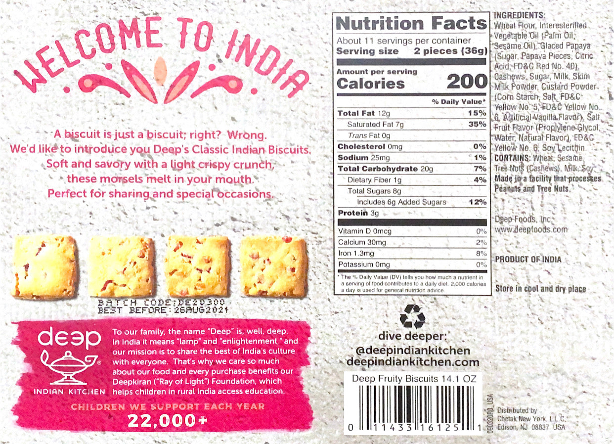 Fruit Biscuits – Made with fresh hand-picked ingredients, fruit biscuits by Deep are buttery and crunchy. These biscuits are sweet and you can feel fruit and nut pieces in each and every bite, which makes for a nutritious treat for everyone.