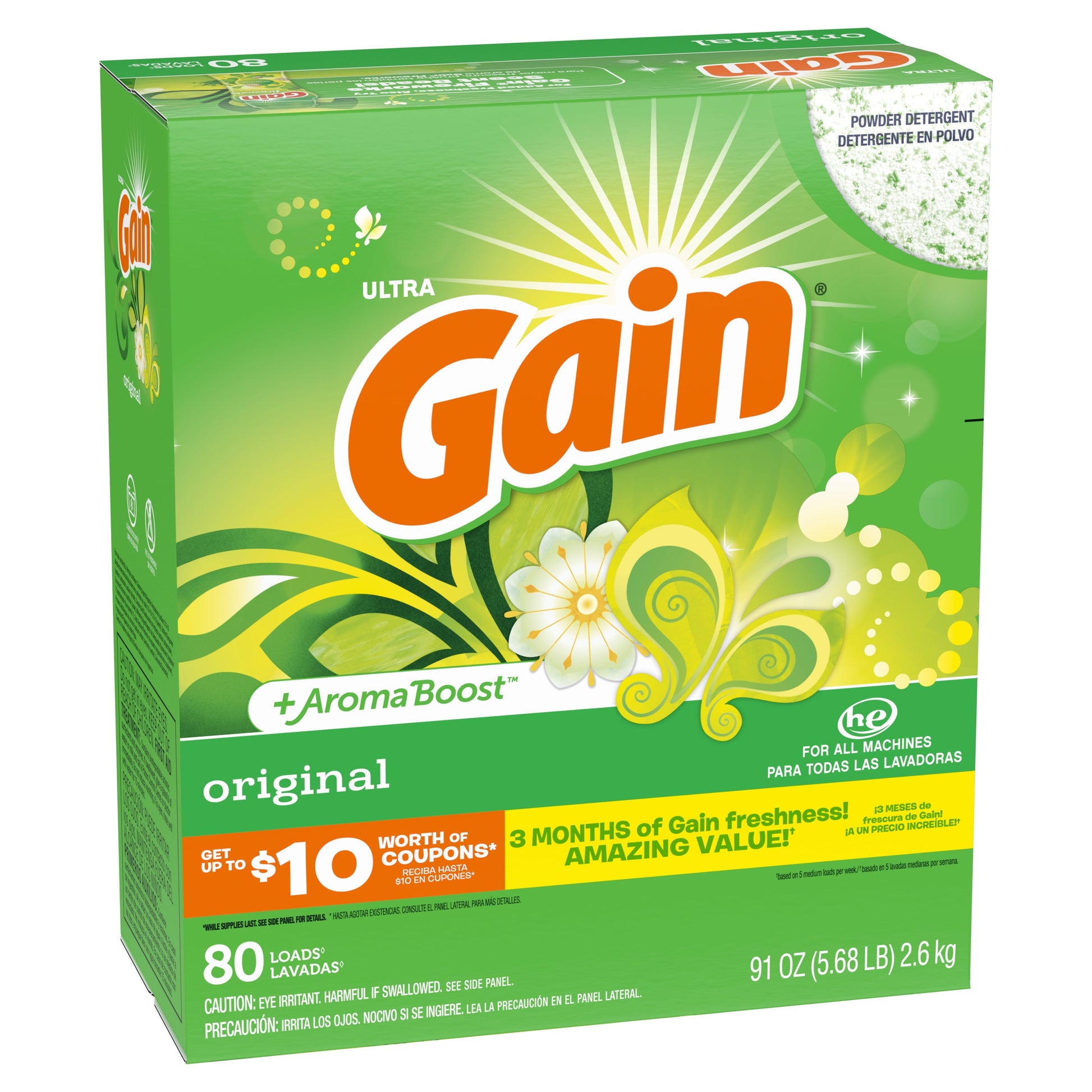 Gain Powder Laundry Detergent in Original Scent. For more of the scent you love, try adding Gain Fireworks and Gain Fabric Softener to your wash. 91 oz.