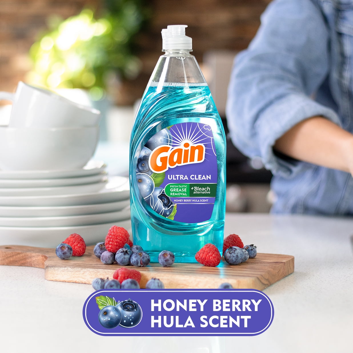 At last the irresistible scent of Gain comes to dish washing. For a fantastic clean with a great scent experience, try Gain 90 fluid ounces Ultra Concentrate dish washing liquid dish soap with our honey berry hula scent.