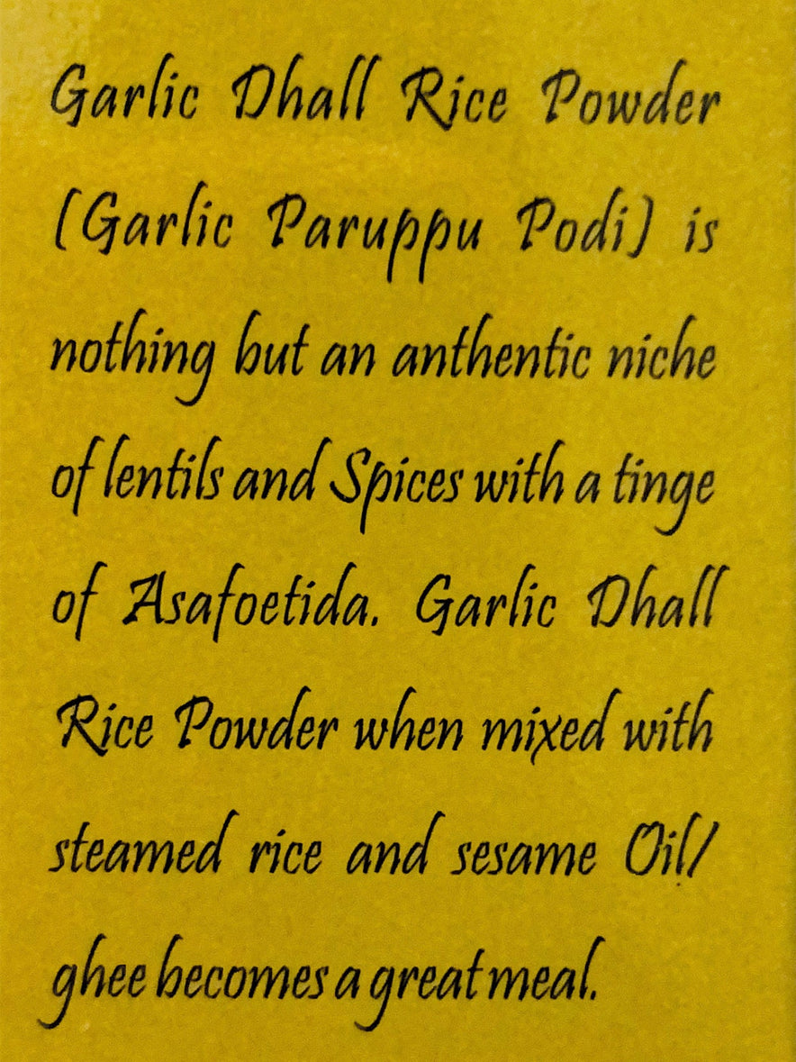 Sri Ganeshram’s 777 Brand Garlic Dhall Rice Powder