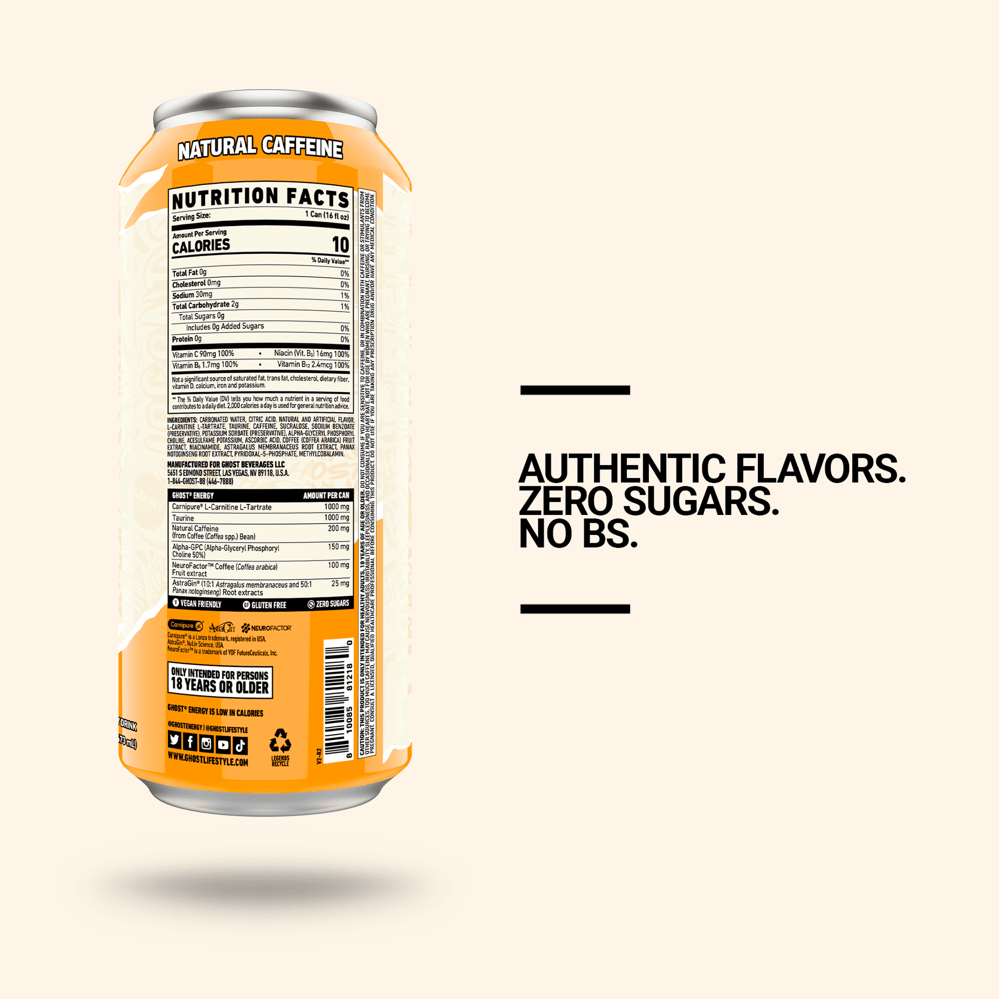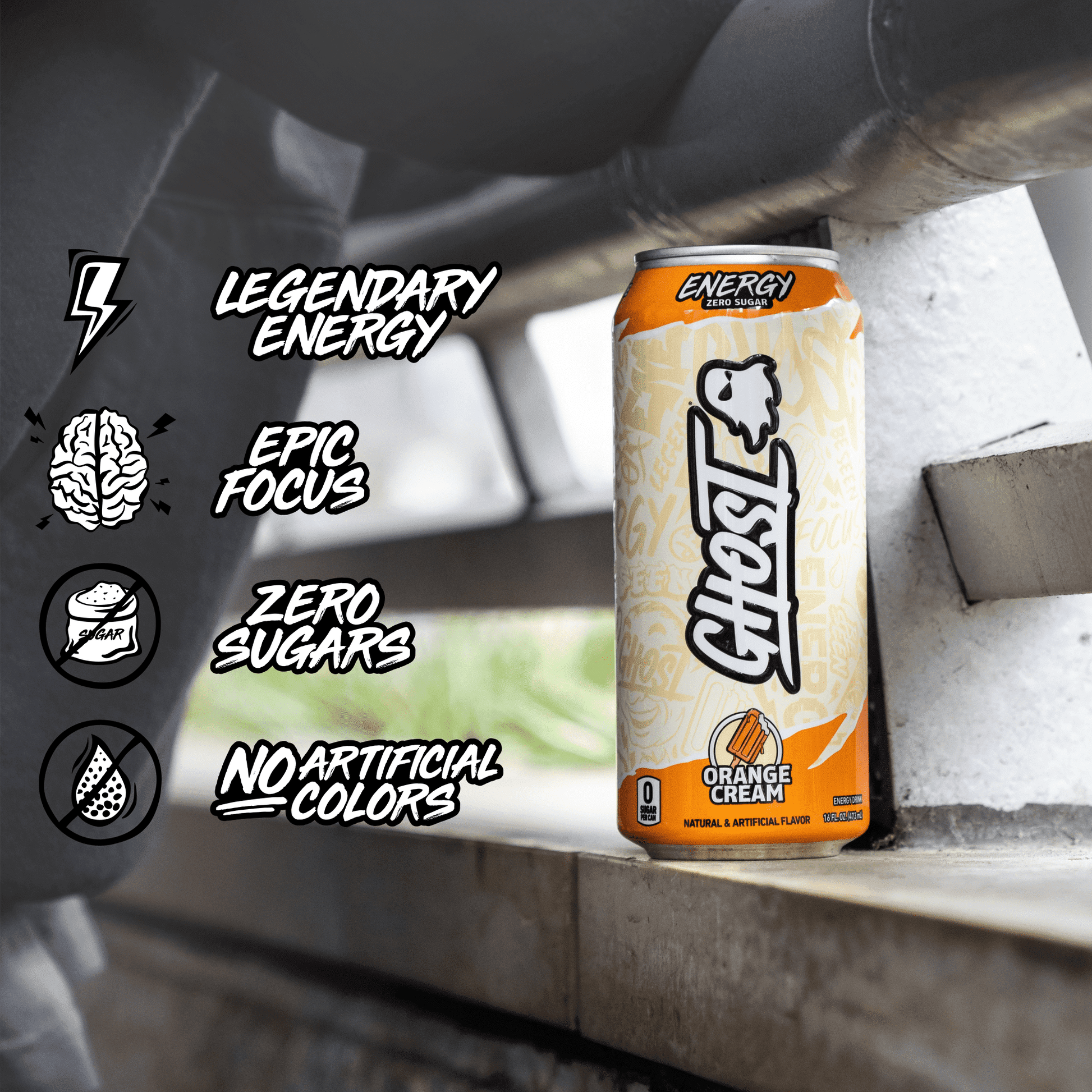 Feel-Good Energy: GHOST® ENERGY is the fully transparent, fully loaded energy drink we’ve all been waiting for. No sugar. No artificial colors. No BS. Orange Cream flavor. 16 fl oz. Only intended for persons 18 years or older.