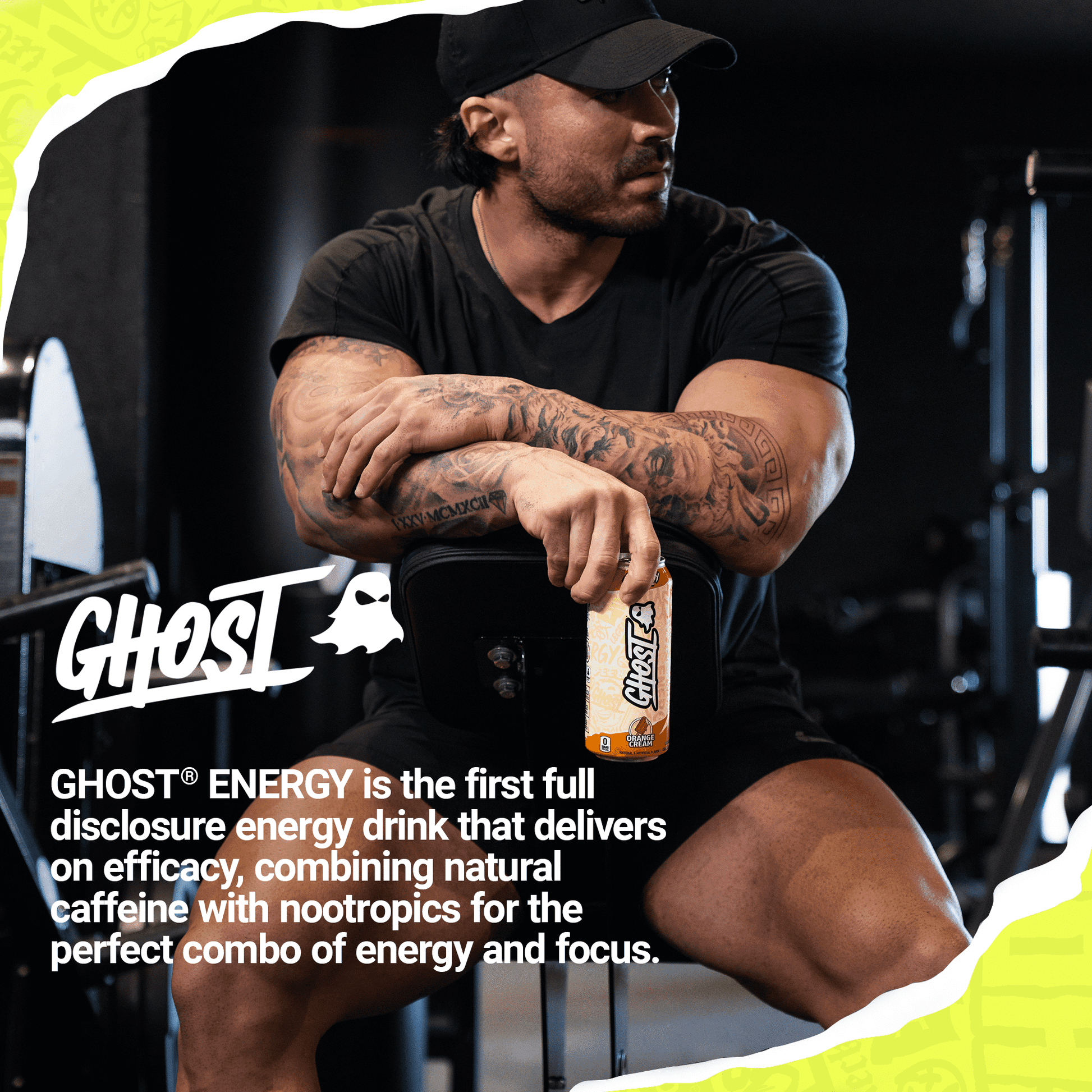 GHOST® ENERGY is the fully transparent, fully loaded energy drink we’ve all been waiting for. Our legendary energy drink features no sugar, no artificial colors, and authentic Orange Cream flavor. It contains 200mg of Natural Caffeine from coffee beans, which has been found anecdotally to deliver a smooth, feel-good energy with less jitters and no crash when compared to other forms of caffeine. GHOST® ENERGY also combines the nootropics of Carnipure L-Carnitine, Alpha-GPC, Neurofactor, and AstraGin to help your body convert fatty acids into energy, support brain and cognitive function, and absorb a wide range of nutrients.*