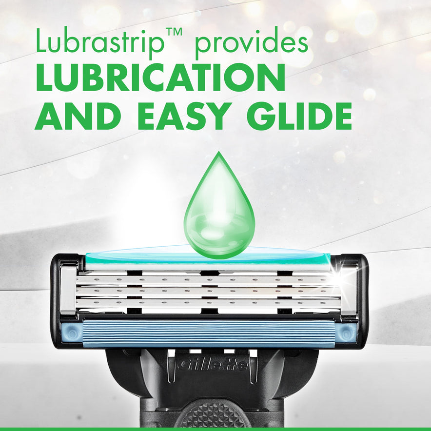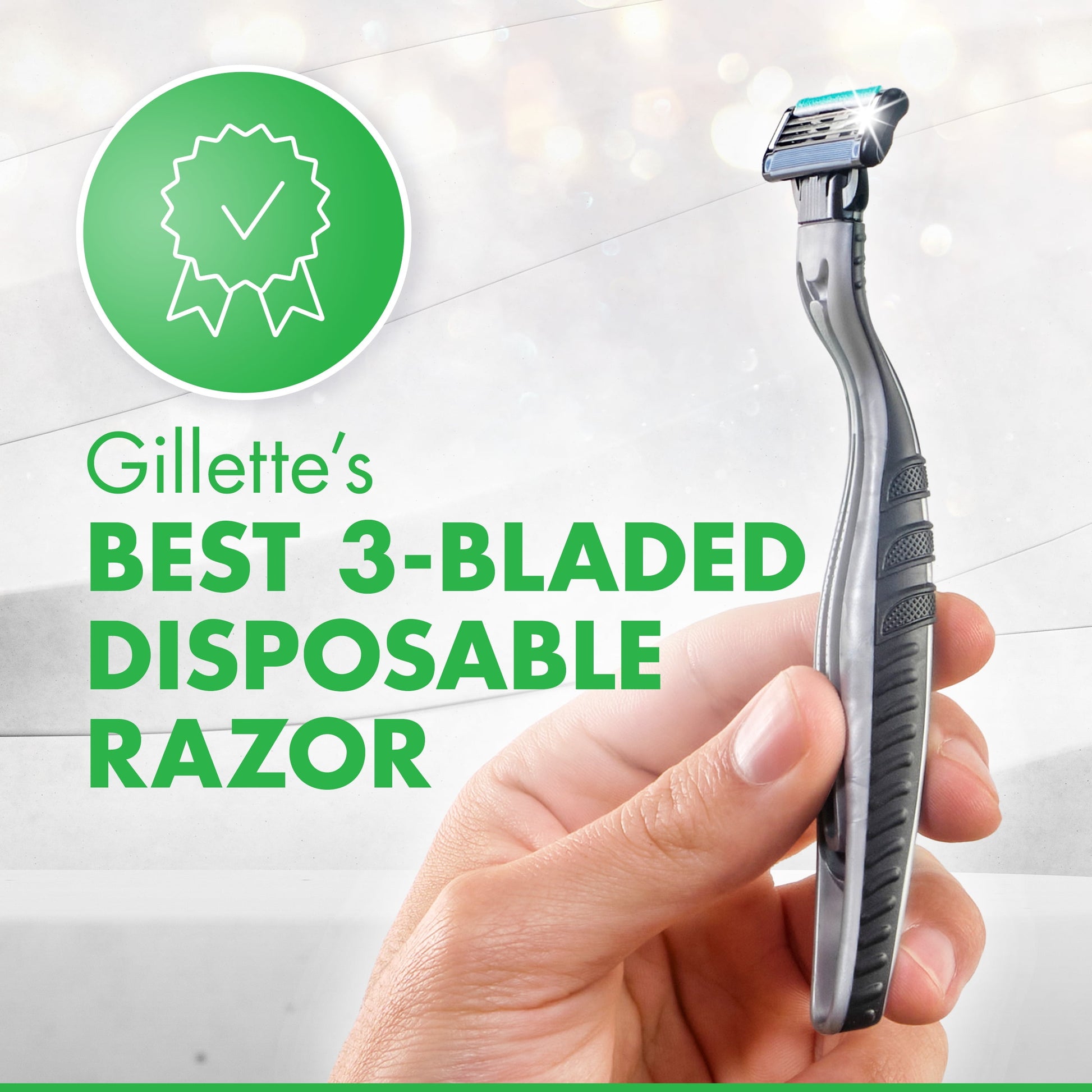 Gillette Mach3 Sensitive Men's Disposable Razor features 3 high definition blades for glide and comfort and an indicator lubrastrip, which fades to white to let you know when shave is no longer optimal. Great for sensitive skin, this razor has an enhanced lubrastrip with more lubricants released (vs. Mach3 disposables). A pivoting head provides incredible closeness. Complete with an ergonomic handle for great control and maneuverability.