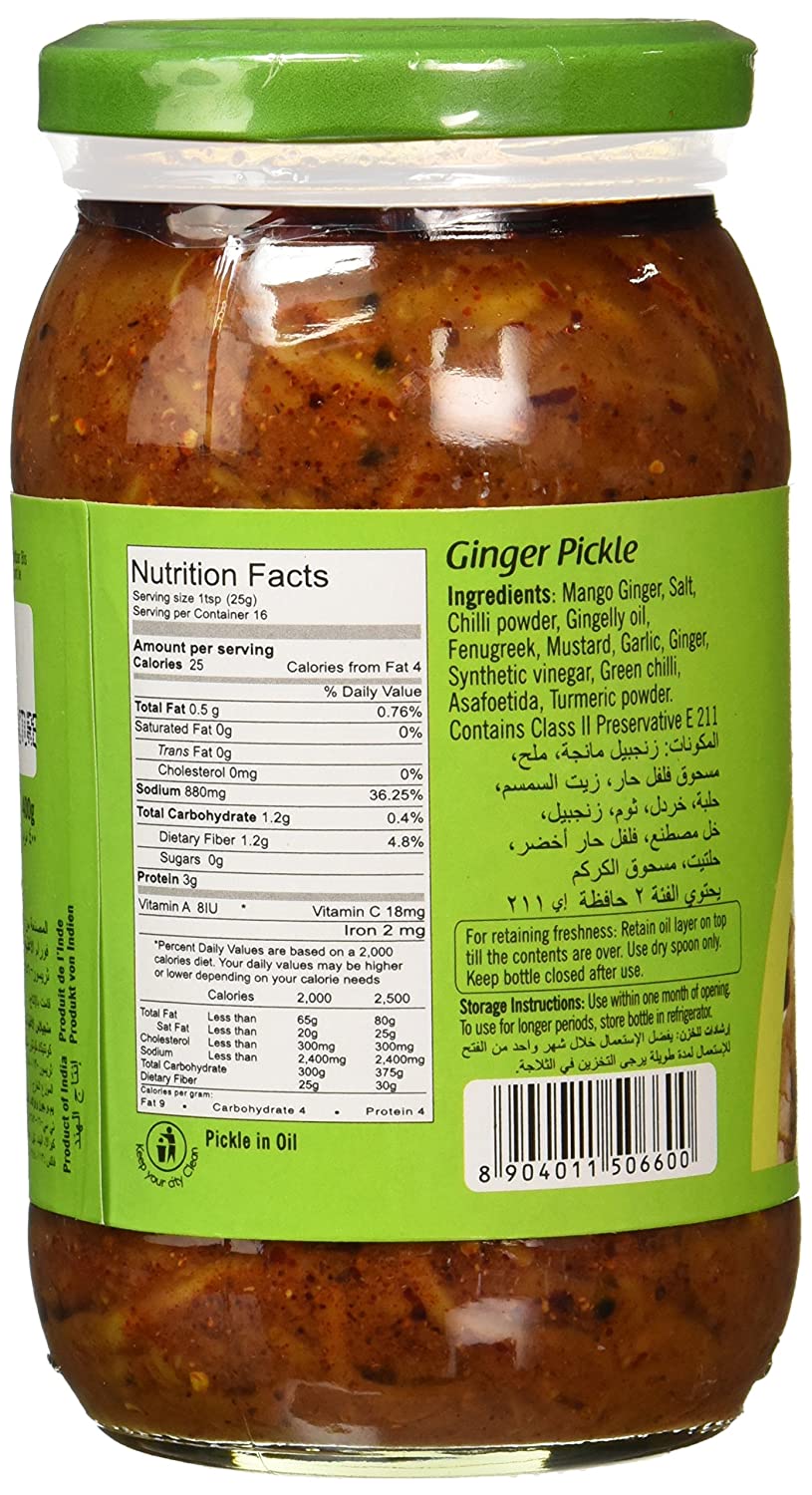 A typical South Indian style Ginger pickle is made by cooking ginger slices in oil with spices like chili powder, tamarind and sometimes a little bit of jaggery to add a slight sweet flavor to the pickle.
