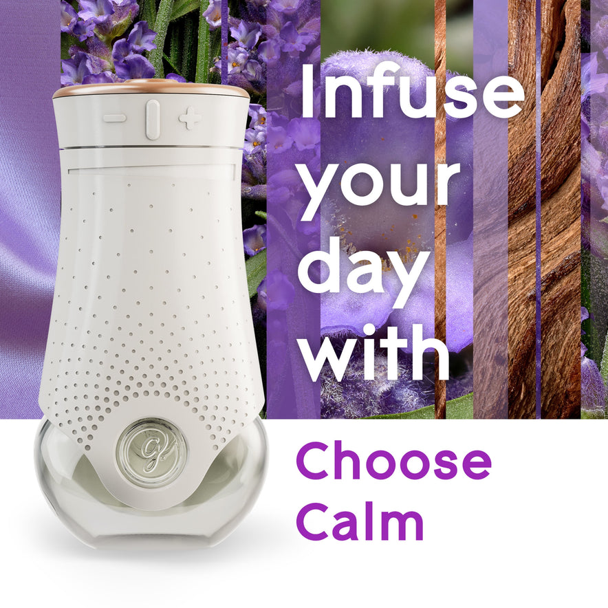 Relax the mood with Glade Aromatherapy Electric oil diffuser refills. Melt into a dual blend of essential oil-infused fragrance and Choose Calm. This Glade air freshener refill uses fragrance infused with essential oils that are traced to the countries of origin. Infuse your day with the blend of French Lavender and Australian Sandalwood. Glade plug in diffuser is consciously crafted for a life in balance, made without parabens, phthalates, nitro musks, artificial colors or dyes.Own the mood with each breath. Glade refill contains fragrances infused with 2x more essential oils (vs Glade Electric scented oil). Works with Glade Plug In air freshener dispenser. Long Lasting Authentic Fragrance lasts up to 60 days (on low setting).