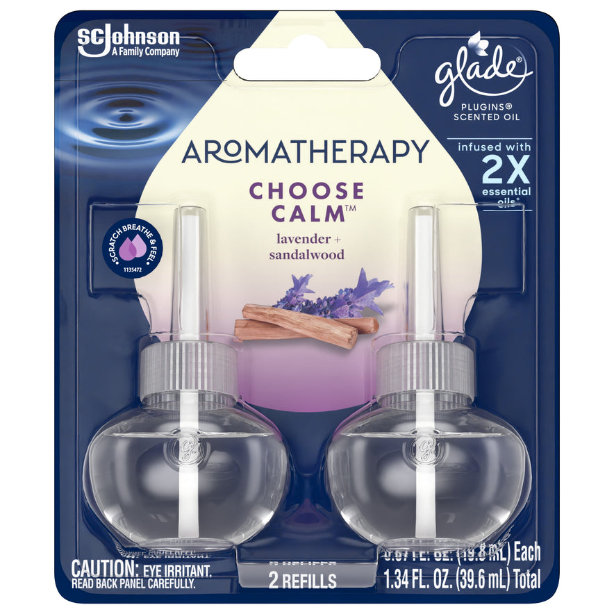 Glade Aromatherapy PlugIns Scented Oil Refills, Air Freshener, Fragrance Infused with Essential Oils, Choose Calm Scent with Notes of Lavender & Sandalwood, 2 x 0.67 oz (19.8 ml)
