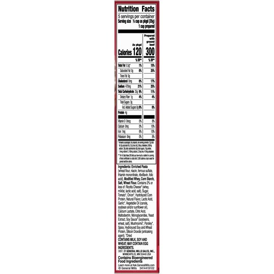 BOX CONTAINS: 1 box contains pasta and sauce mix; Makes 5 servings