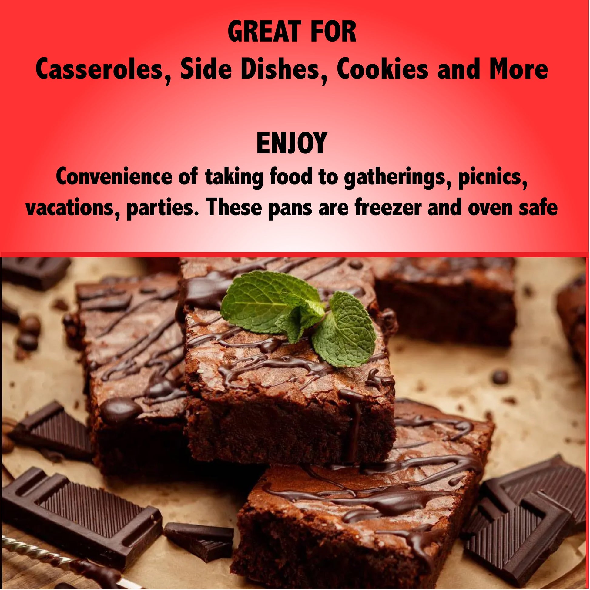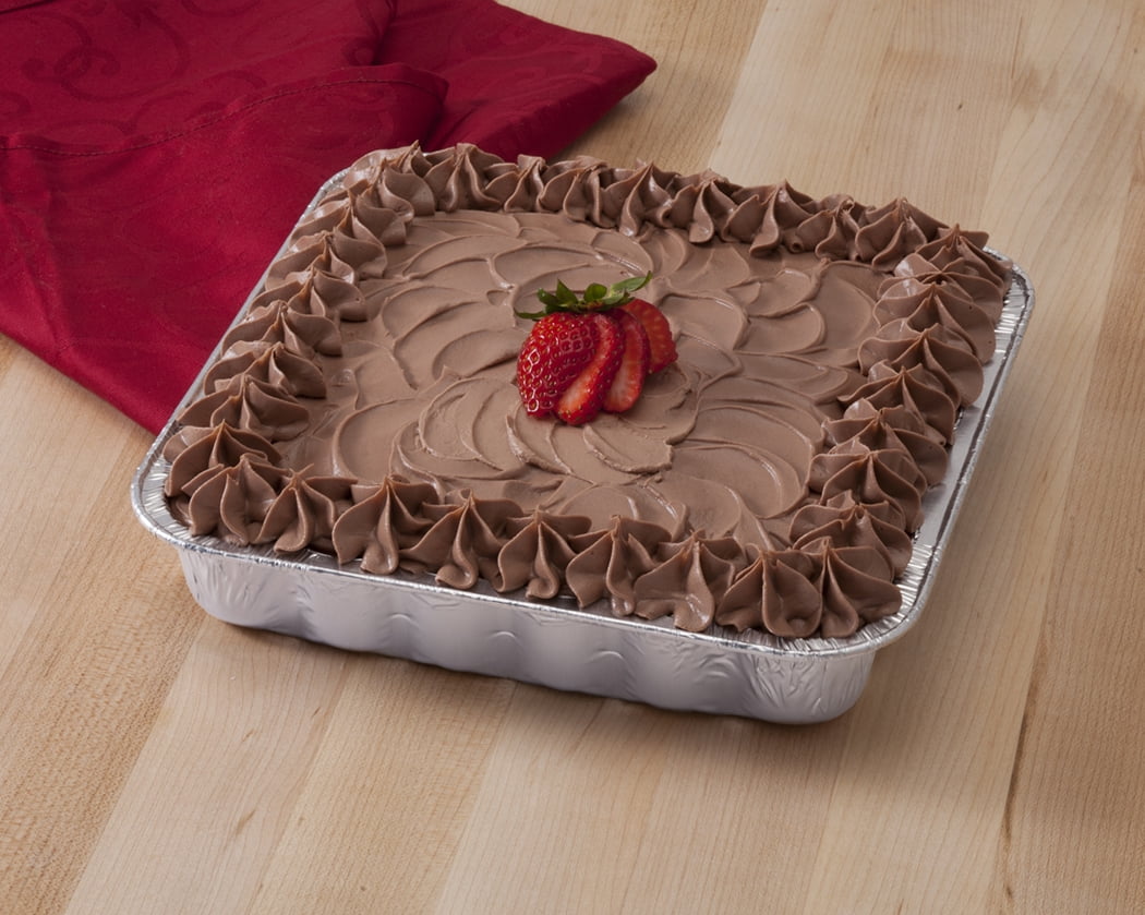 Add convenience and performance to your kitchen pantry with the Handi-Foil Aluminum 8-inch Square Cake Pan with Snap-on Lids. Each package includes 6 pans and 6 Snap-on lids. Item number 22396. It is made of aluminum for quick and even heating to give you great results every time. The pan dimensions are 8-inches long x 8-inches wide x 1.46-inches deep. This versatile pan is great for cakes, brownies, dinner rolls, mac and cheese, salads and side dishes. The silver finish can go right on to your dining table. The Snap-on lids will safely store, protect or allow you to transport your dish just about anywhere. Bake your favorite cake or side dish, snap on the lid and take it to your next picnic or party. Don't worry about getting your pan back, it is disposable. Clean-up is simple and eco-friendly, just rinse and recycle. Kosher certified by the Orthodox Union.