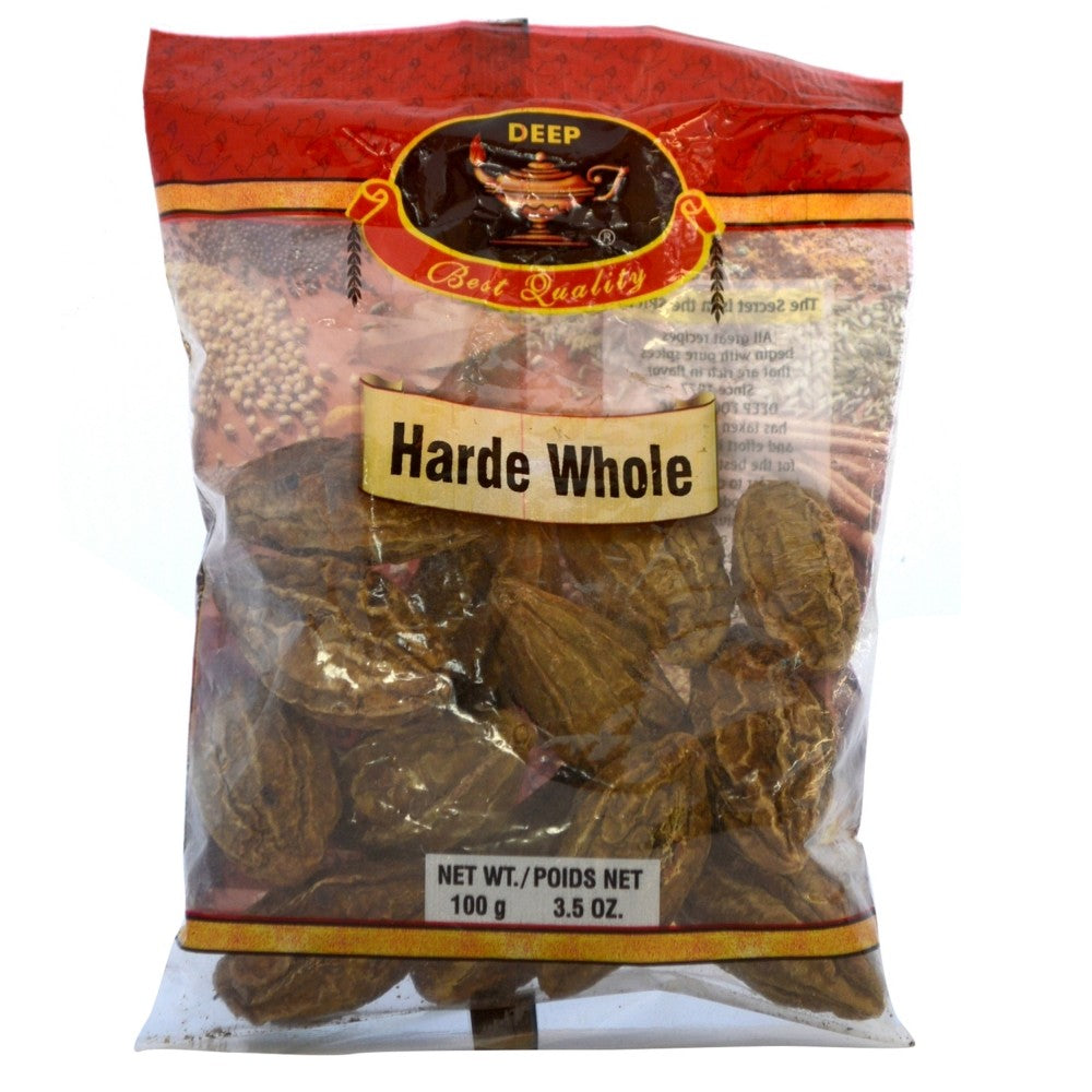 DEEP Harde Whole 3.5 OZ.|Harde is well known for its many medicinal properties. These dried, oval fruit are used for everything from relieving coughs and asthma to skin diseases and itching. It is used widely in India for regulating and soothing the colon, working as a natural laxative and controlling flatulence| Boil the berries in water and drink it, or grind into a powder and mix it with water into a paste for skin applications.