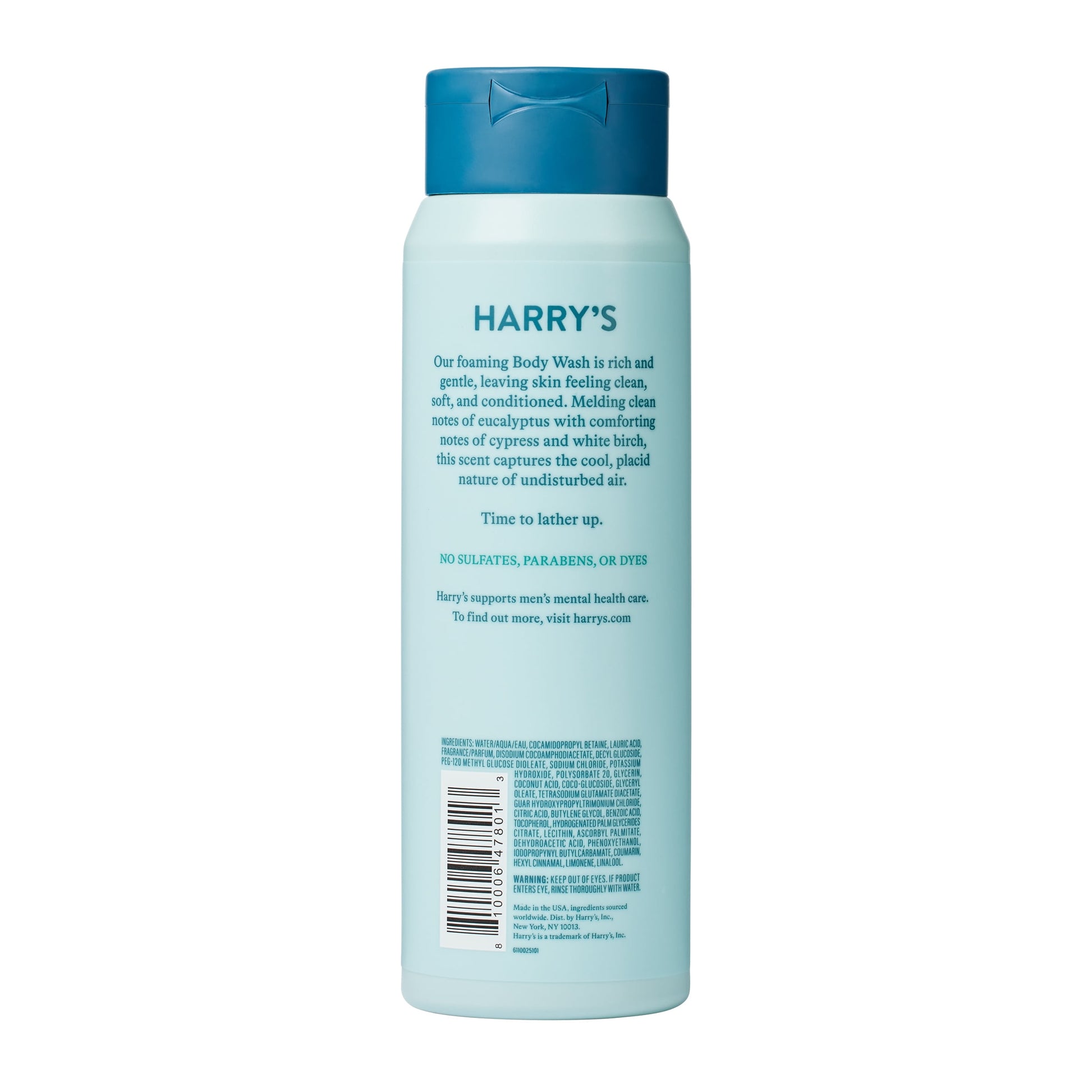 Harry's Body Wash for Men lathers richly, cleanses gently, and leaves skin feeling smooth. Made without sulfates, parabens, or dyes, this body cleanser for men banishes dirt and leaves skin feeling clean and soft after showering. The crisp, clean scent of Wildlands is the perfect way to kick-start (or wash off) your day. The scent of this men's foaming body wash includes captivating notes of eucalyptus, cypress, and white birch. The crisp scent of this foaming body wash for men captures the cool, placid nature of undisturbed air.