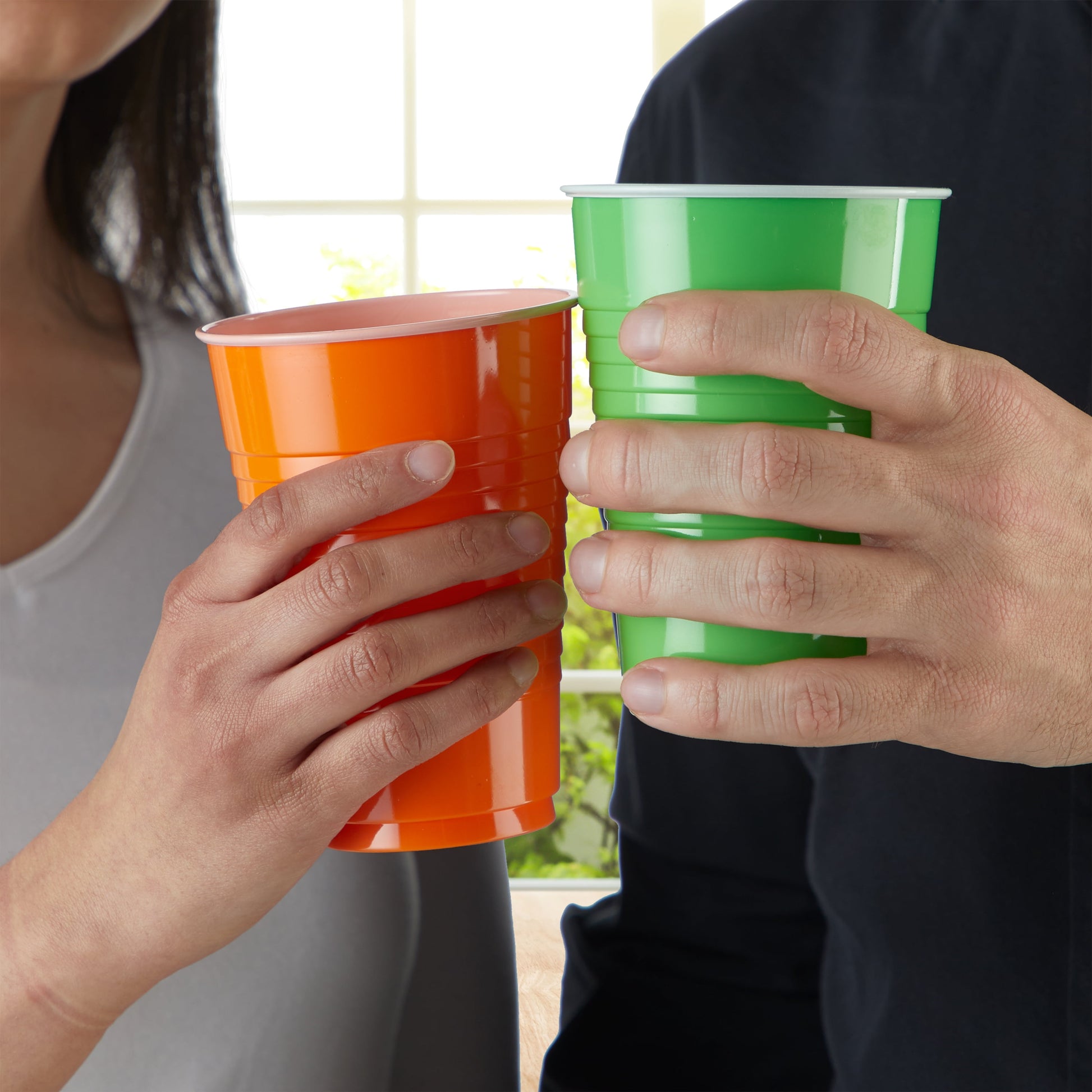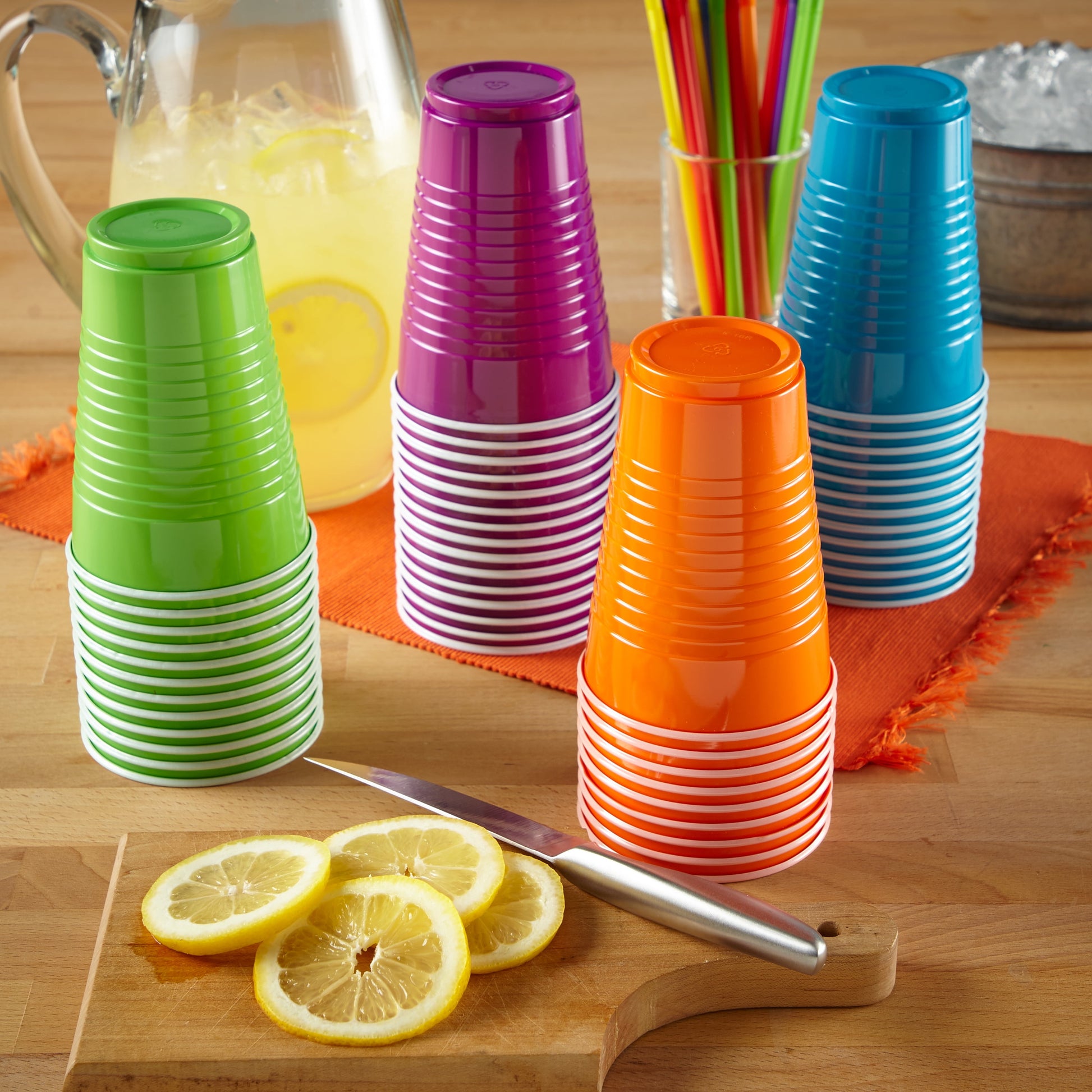 Hefty Everyday Disposable Plastic Cups take all the fuss and mess out of entertaining while adding vibrant color and hassle-free cleanup to your gathering. These colored plastic cups feature a sleek and stylish shape that shows guests how elegant and practical plastic drinkware can be. An easy-to-grip cup means less spillage and more in-hand comfort, which is great for both your carpet and your guests' clothing. Hefty disposable party cups feature dependable durability, so your guests can enjoy cup after cup of your fruit punch or adult party beverages without worrying about breakage. Choose assorted color cups to add pizzazz to your table setting. Not only are these strong and sturdy large plastic cups great for parties, they are a child- and budget-friendly choice for everyday use at home. Hefty plastic cups simplify cleanup, saving you the time and energy involved in washing countless glasses, so you have more time for relaxing with loved ones.