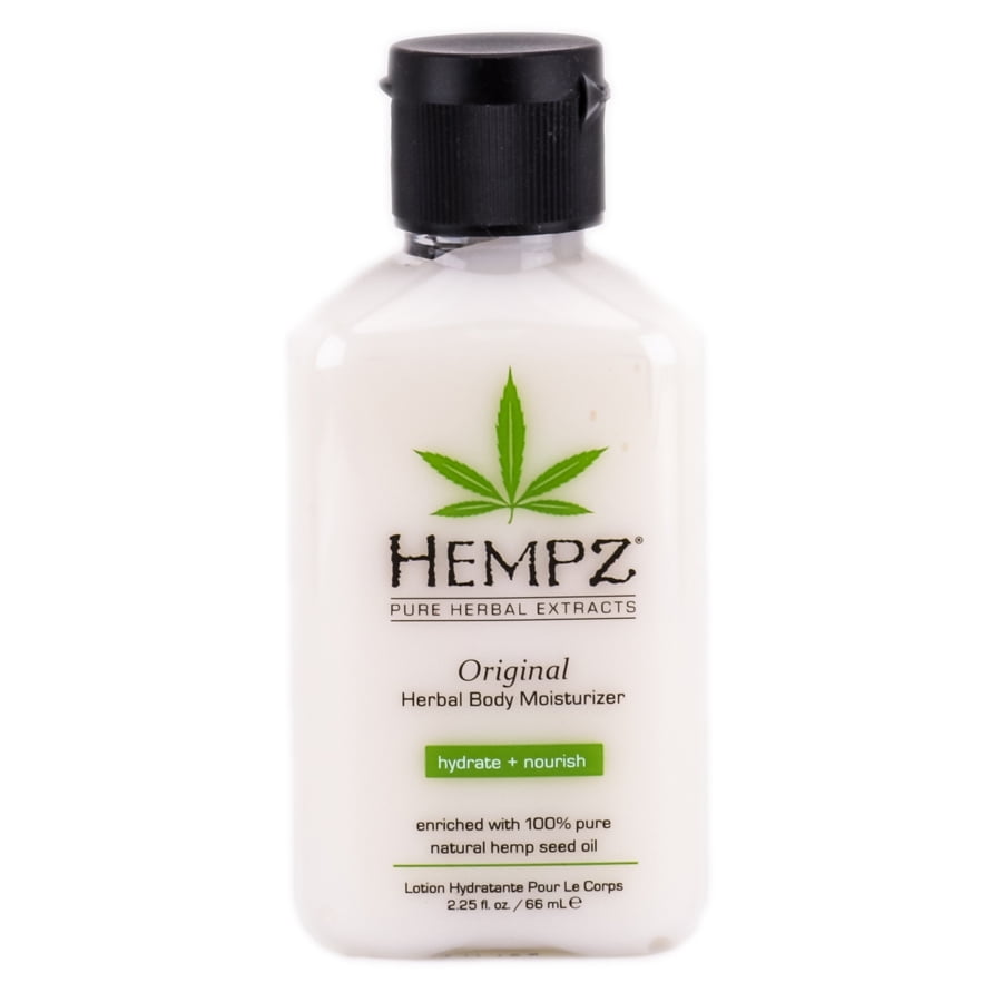 Hempz Original Herbal Moisturizer, Hydrate and Nourish Lotion, 2.25 fl oz - Helps condition skin and hinder free radicals with the pure hemp seed oil. Harnesses the natural restorative and hydrating power of 100% Pure Natural Hemp Seed Oil to help nourish, protect, condition and dramatically hydrate skin. Hemp Seed Oil is one of the world's most perfectly balanced natural oils containing essential fatty acids and key amino acids, natural proteins, carbohydrates, vitamins and nutrients vital for healthier, younger looking skin. Helps replenish and lock in moisture to cure even the driest skin. Enhances Skin's natural protective barrier. Non-greasy fast absorbing formula.