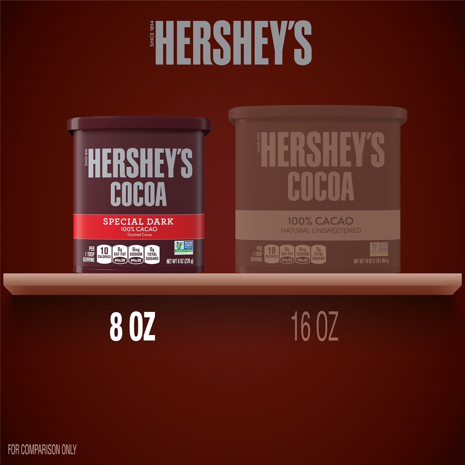 Contains one (1) 8-ounce can of HERSHEY'S SPECIAL DARK Dutched Cocoa Powder