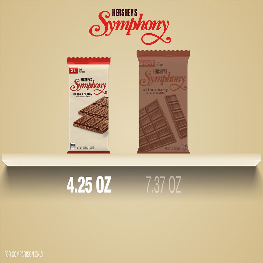 Contains one (1) 4.25-ounce, 16-piece HERSHEY'S SYMPHONY Extra Creamy Milk Chocolate XL Candy Bar