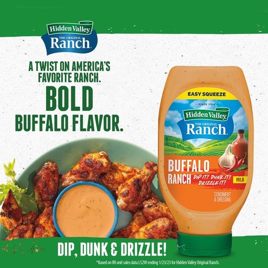 DINNER MADE EASY: Add instant flavor to your favorite salad, meal or side dish with a touch of creamy Hidden Valley® Buffalo Ranch Topping and Dressing in a convenient easy squeeze bottle