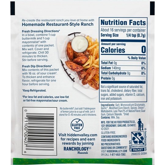 BUTTERMILK RANCH: Keep your friends and family wanting more with good old-fashioned Hidden Valley Buttermilk Ranch Salad Dressing & Seasoning Mix made with no preservatives; package may vary