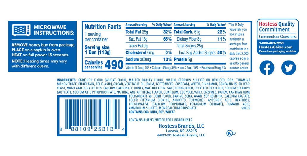 Heat ?em up or eat them straight from the pack. HOSTESS Jumbo Honey Buns are deliciously iced and ready to make your morning (or whenever!) a treat. Warm them up in the microwave, and LIVE YOUR MOSTESS as they melt in your mouth. Pair them with a cup of coffee for the ultimate snack time. Individually wrapped, so you can have a care-free, indulgent moment of HOSTESS deliciousness anywhere. Shelf-Stable