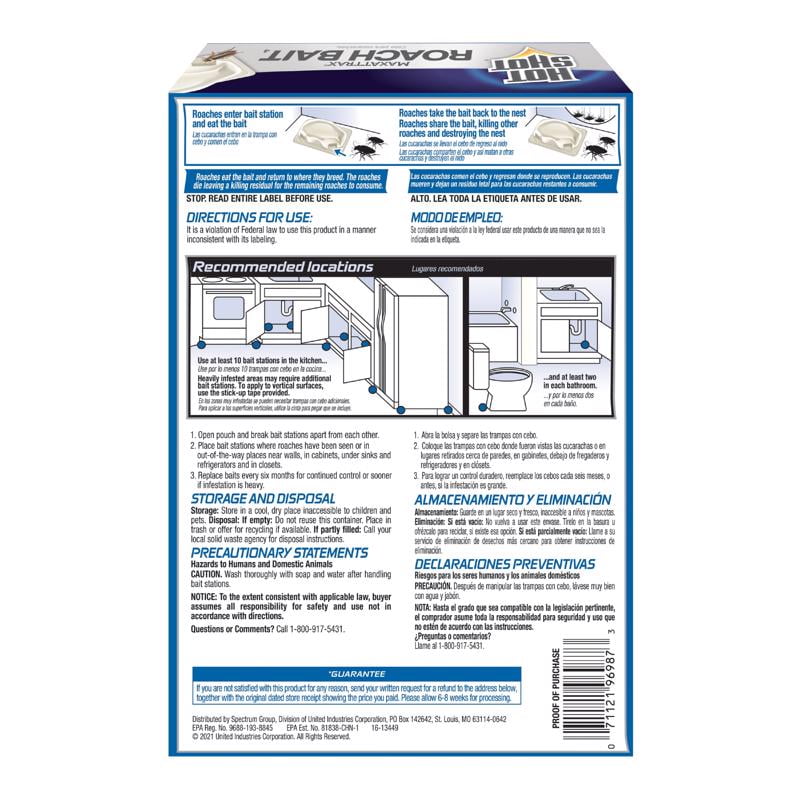 Hot Shot Roach bait stations are to be used inside your house to treat & mitigate roach infestations. Kills roaches up to 6 months. Kills both large and small roaches.