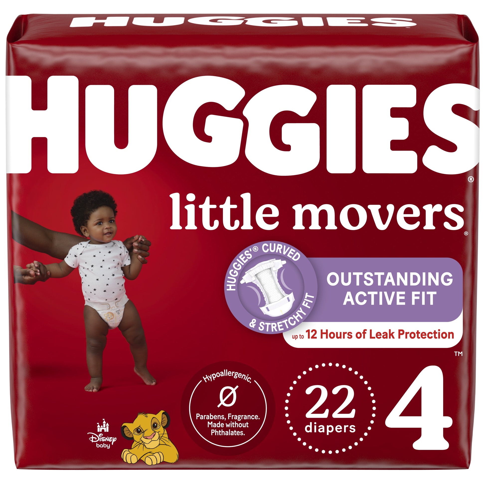 Huggies Little Movers Baby Diapers are designed to stay in place through active play! These disposable baby diapers are designed for worry-free running, jumping and playing without any leaks or disruptions. Each Little Movers diaper is up to 100% leak-free (even for blowouts!) and offers up to 12 hours of comfortable protection to keep your baby active and clean. Our diapers feature a curved and stretchy fit and a flexible, yet secure waistband designed to prevent leaks and help keep your baby comfortable while on the move. Double Grip Strips provide a secure, flexible fit and the diaper is designed to help eliminate gaps at the legs and waist to protect against leaks and irritation. These Huggies diapers are extra soft and contoured around the legs to help provide red-mark free, gentle protection. Little Movers are made with a fast-absorbing DryTouch Liner and our baby diaper locks away 99% of wetness to help keep skin dry. Plus, a wetness indicator easily lets you know when your baby is ready for a diaper change. Little Movers Diapers are available in size 3 (16-28 lbs), size 4 (22-37 lbs), size 5 (27+ lbs), size 6 (35+ lbs) and size 7 (41+ lbs).
