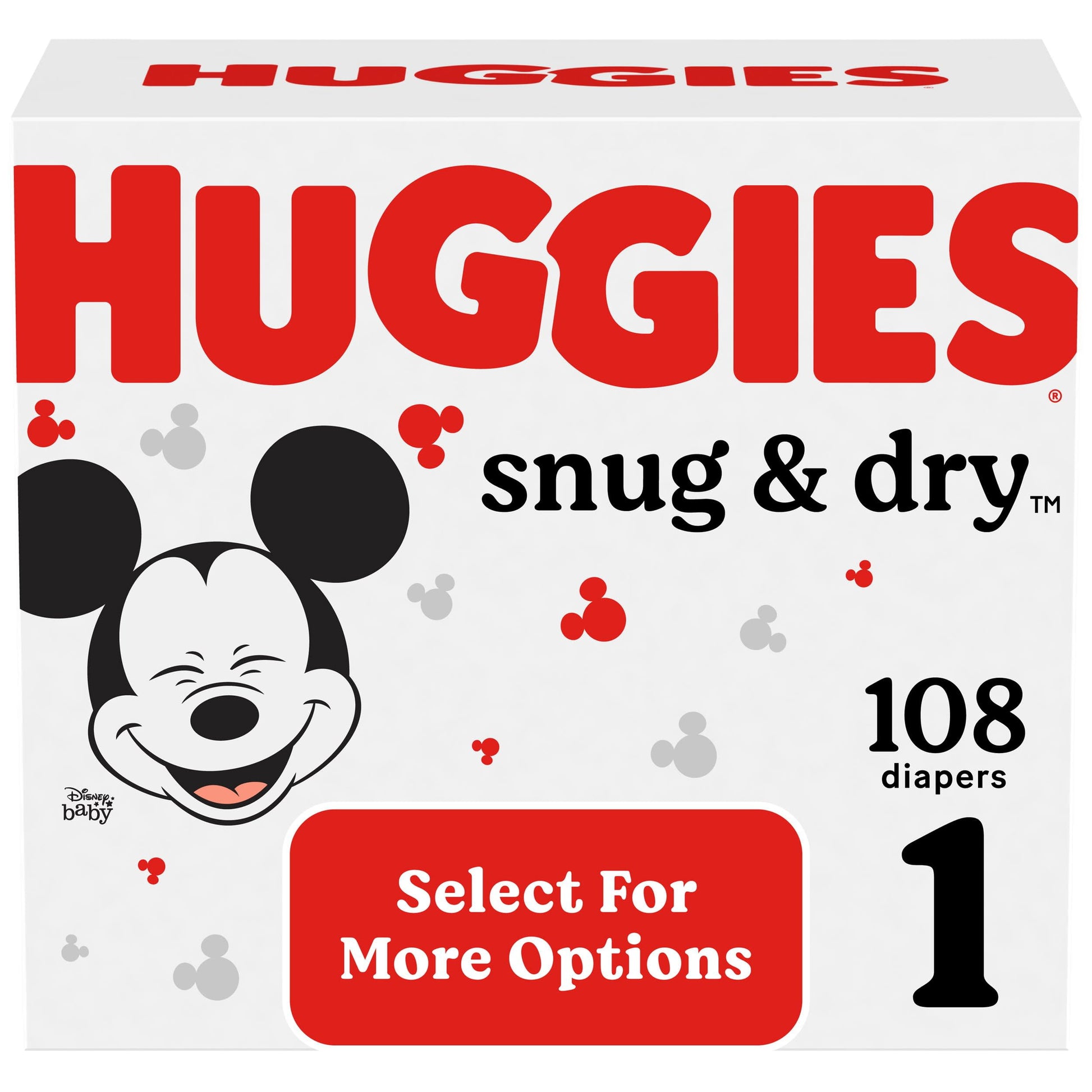 Help give your baby healthy, huggable skin with Huggies Snug & Dry Newborn Baby Diapers. These disposable baby diapers offer up to 12 hours of long-lasting protection, day or night, thanks to the Leak Lock Protection. They're also made with Triple Layer Protection that absorbs wetness in seconds. Plus, each diaper has a stretchy waistband for added comfort and curves at every layer to fit your baby’s delicate skin. Snug & Dry is hypoallergenic, contains no harsh ingredients and is free of fragrances, parabens, elemental chlorine and natural rubber latex. A wetness indicator changes from yellow to blue when in contact with moisture, so you always know when your baby is ready for a diaper change. Featuring fun Disney Mickey Mouse designs as cute as your baby, Snug & Dry Diapers are available in sizes 1 (8-14 lbs), 2 (12-18 lbs), 3 (16-28 lbs), 4 (22-37 lbs), 5 (27+ lbs), 6 (35+ lbs) and size 7 (41+ lbs). (*See the Huggies website for details. Expires 12/31/23)