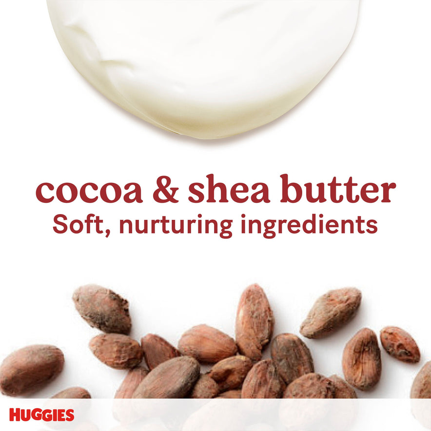 Indulge your skin with luxurious softness with Huggies Wipes with Cocoa & Shea Butter. Designed with a 4-in-1 Sensitive Skincare experience, these disposable wipes clean, hydrate, soothe and replenish skin. Each wipe is lightly scented and infused with cocoa and shea butter ingredients. Providing plant-based ingredients since 1990, these scented hand and face wipes are hypoallergenic, dermatologist-tested and pH-balanced to help maintain healthy skin. They're also alcohol free, paraben free and do not contain phenoxyethanol or MIT for soft, smooth skin with every wipe. A push-button design and EZ Pull 1-Handed Dispensing make it easy for you to grab wipes without wasting sheets. (*70%+ by weight)