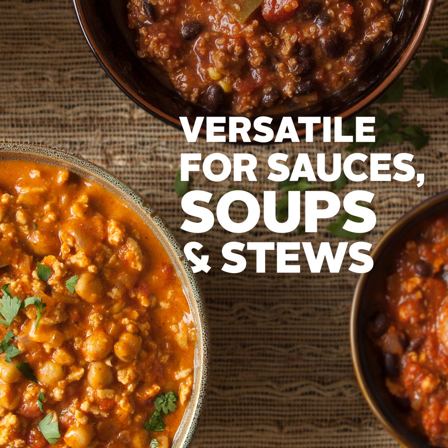 Add body to sauces with the extra-thick and rich texture, made using concentrated, strained tomatoes