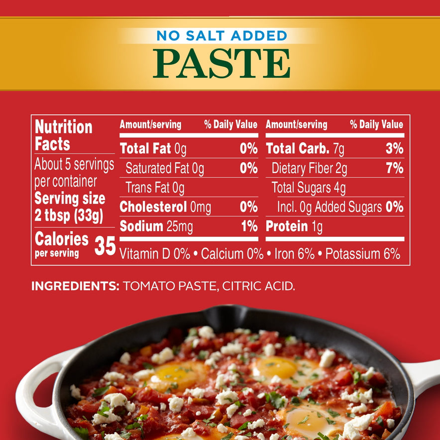 Simmered with natural spices, Hunt's no-salt-added tomato paste is perfect in low-sodium chili, soups, and stews