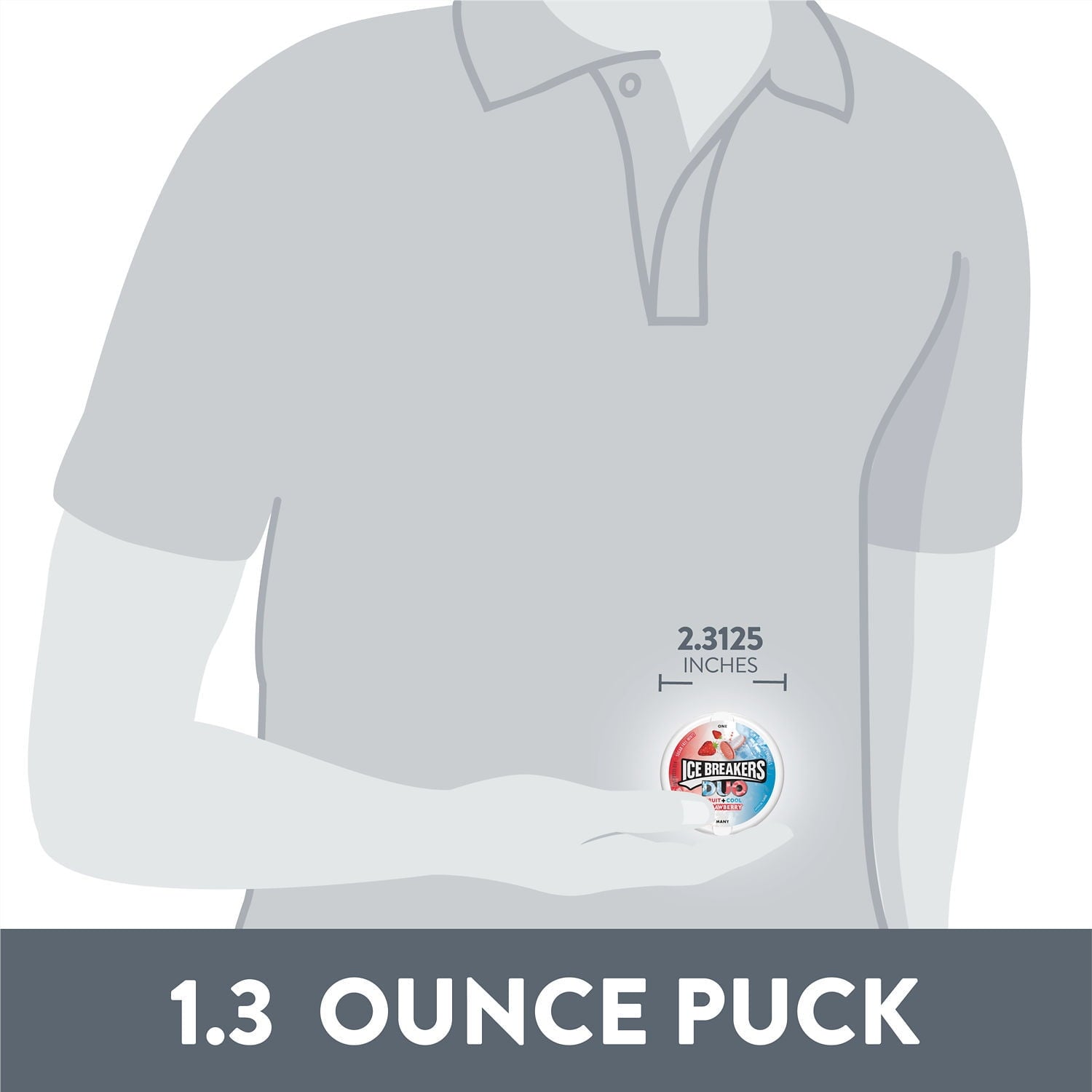Contains one (1) 1.3-ounce tin of ICE BREAKERS DUO Strawberry Flavored Sugar Free Breath Mints