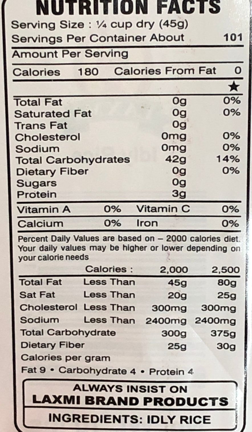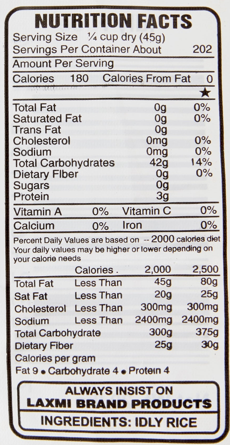 Laxmi Natural Idli Rice is a delicious staple in traditional Indian cooking and is excellent to use in Idlis, Dals, Curries and Soups and Stews.