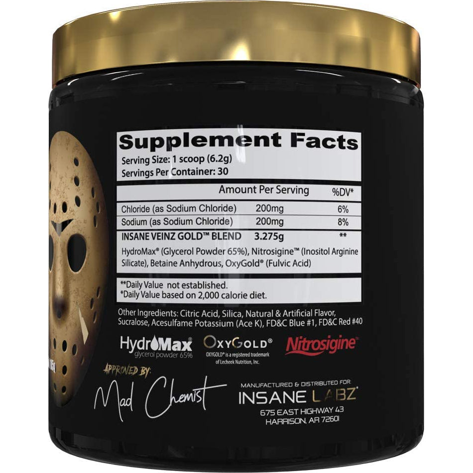 Insane Veinz GOLD is a Nitric Oxide boosting non-stim pre-workout powder loaded with HydroMax® and Nitrosigine® to increase vascularity and blood flow.