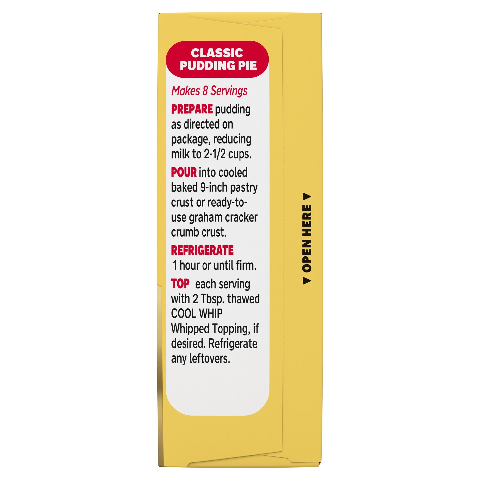 Simply mix with 3 cups of cold milk and allow to set for 5 minutes; refrigerate any leftovers