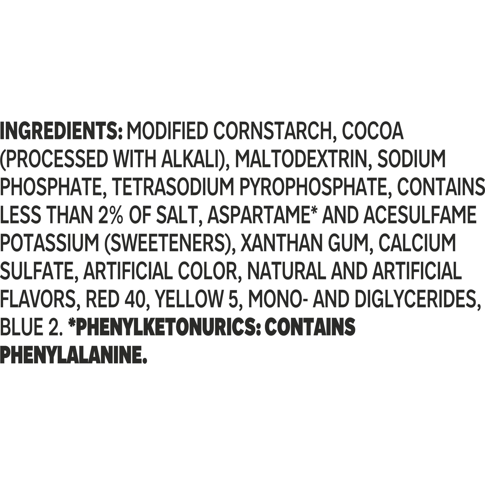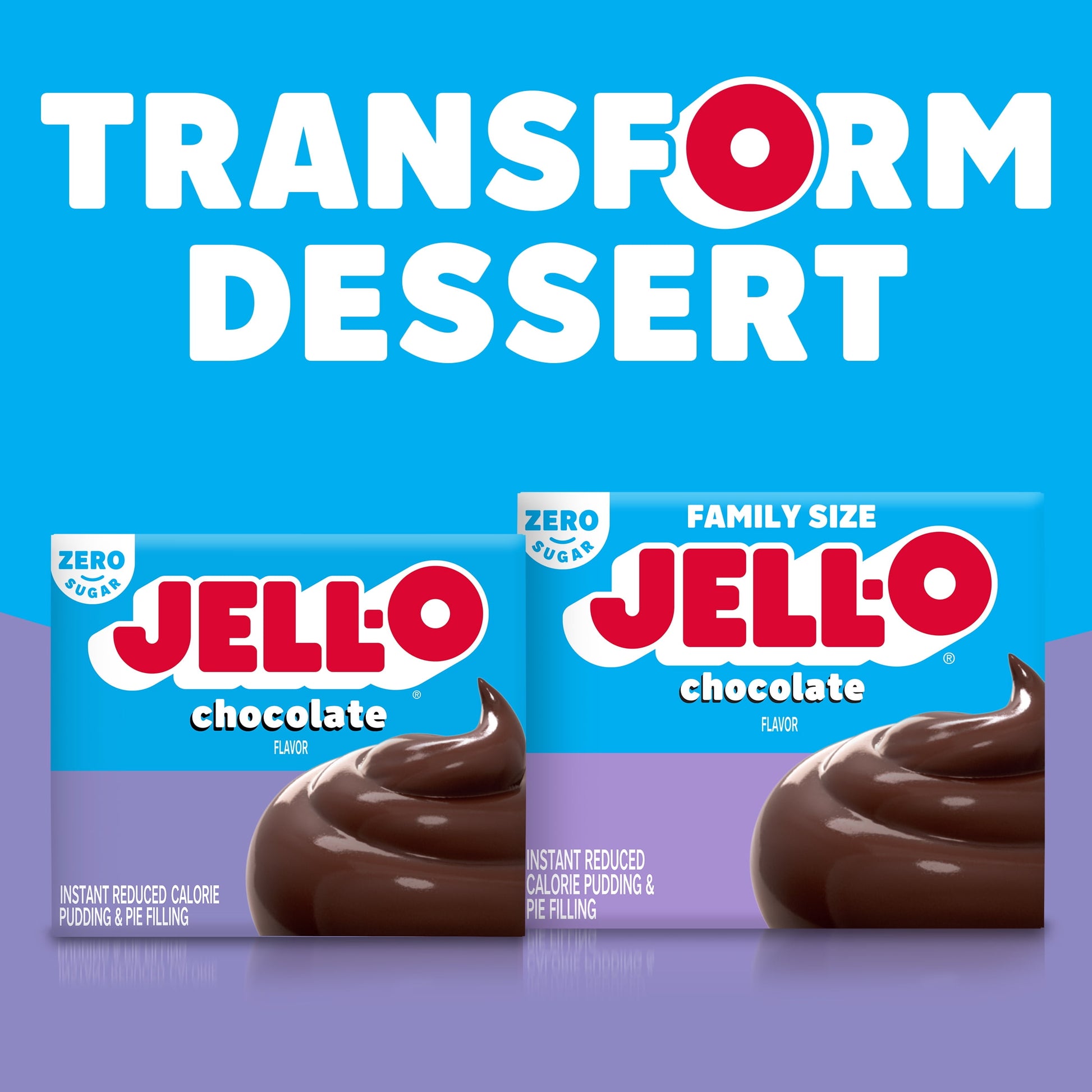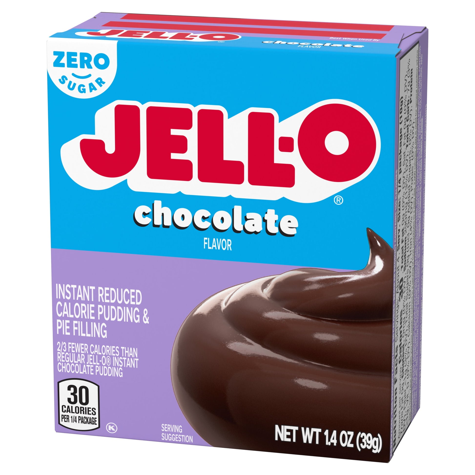Snack happy. Jell-O Zero Sugar Chocolate Instant Reduced Calorie Pudding Mix & Pie Filling tastes delicious whether you enjoy it as a treat or use it as an ingredient in your favorite dessert recipes. Add some wonder to your day with a delicious snack. Fun to make with your kids, our zero sugar chocolate flavor pudding mix can also be used to create a poke cake, tasty crepes or chocolate pie filling. You'll feel good about serving our zero sugar pudding mix that is 2/3 fewer calories than regular Jell-O instant chocolate pudding; as packaged, this product contains 30 calories, regular product contains 100 calories. Our zero sugar chocolate flavor pudding is ready in as little as five minutes. Simply stir milk into the pudding mix and allow to set. Every zero sugar Jell-O pudding mix comes packaged in a 1.4-ounce sealed pouch. Pudding fun in every bite.