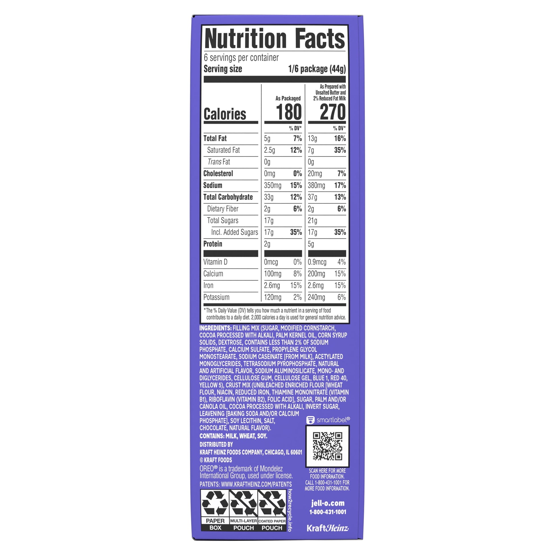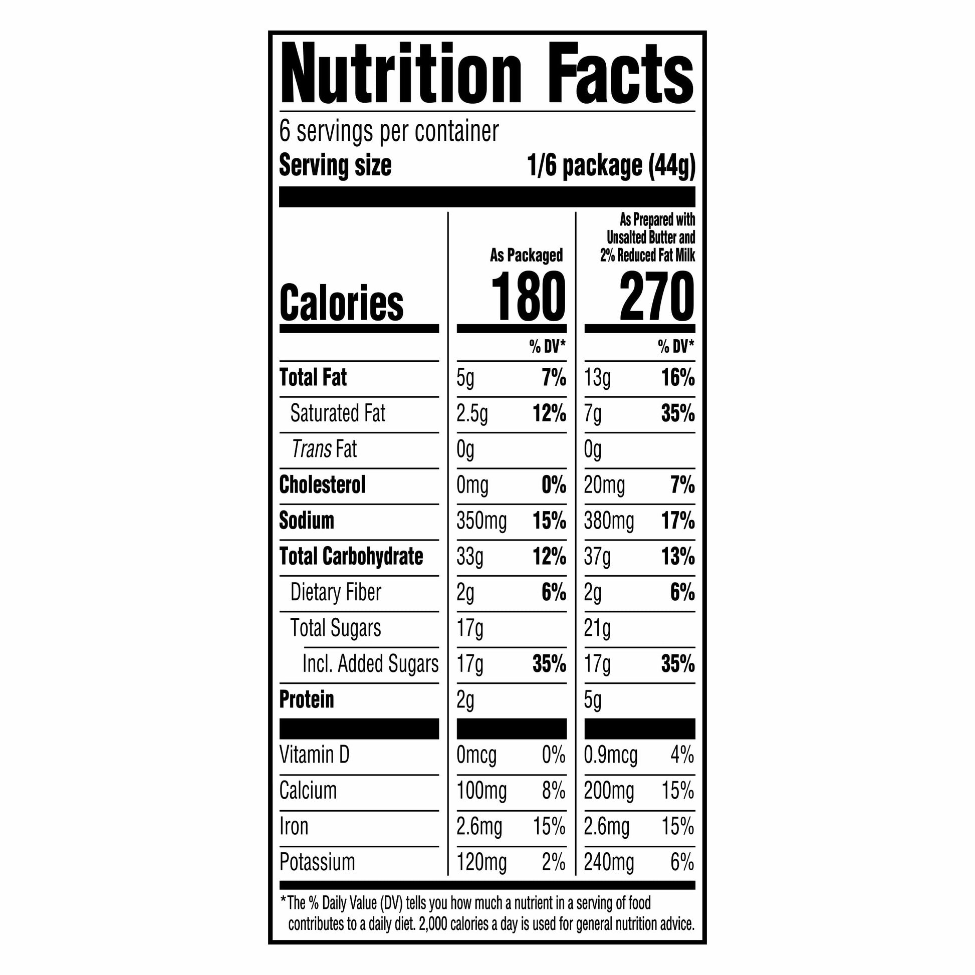 Contains 270 calories per serving when prepared according to instructions on the box