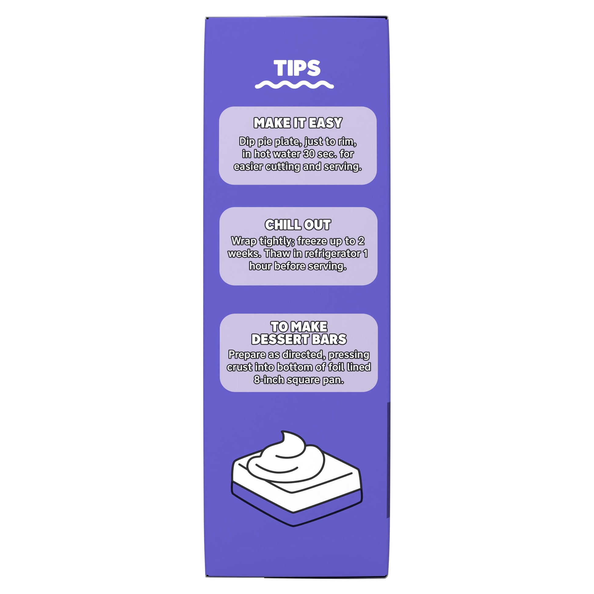Each easy dessert kit contains individually sealed filling mix and crust mix