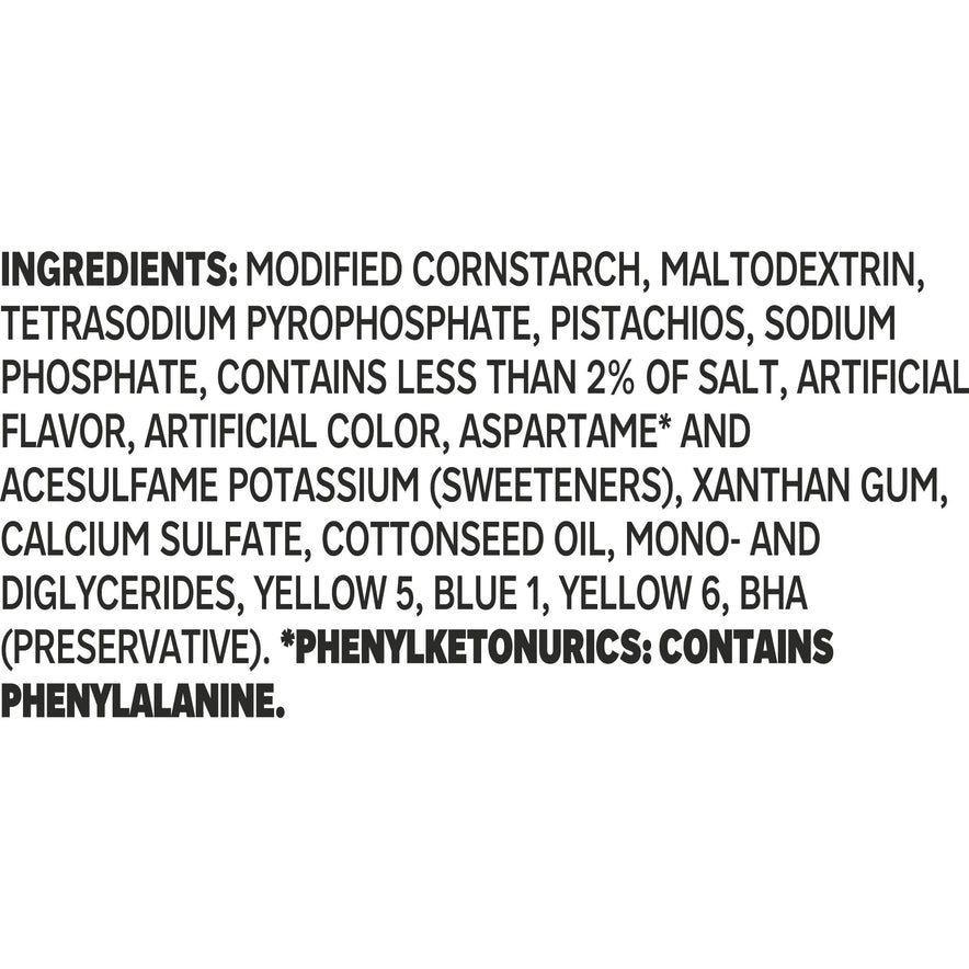 Each artificially flavored pistachio pudding mix is individually packaged in a sealed pouch for freshness